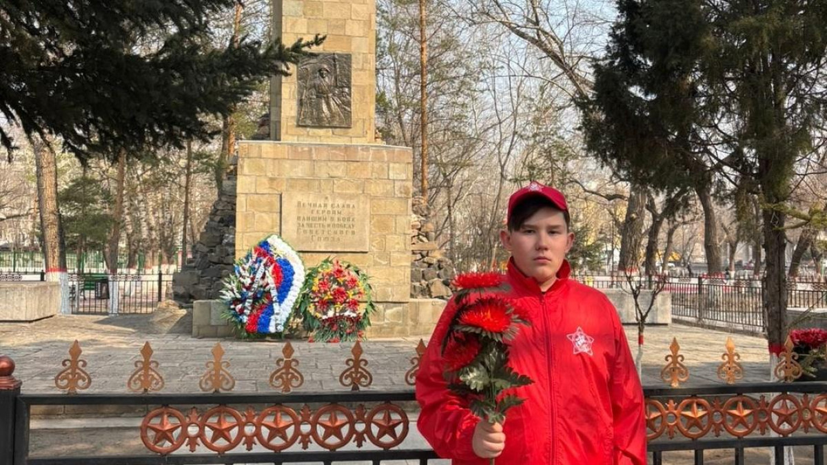 В канун Дня Победы школьник из Хакасии возложил цветы к памятнику советскому солдату в Китае.