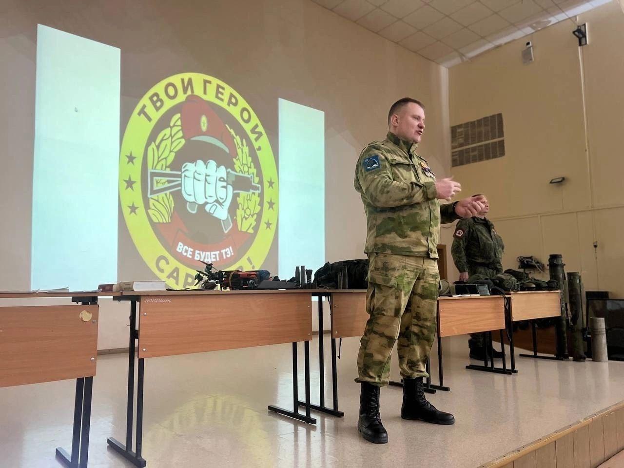 В Саратовской области состоялась "Классная встреча", в ходе которой была затронута тема помощи нашим солдатам, которая приходит из тыла. Лицеистов интересовали вопросы о трудных боевых буднях, о возможностях маскировки, гости поделились с ними историями с военной службы.