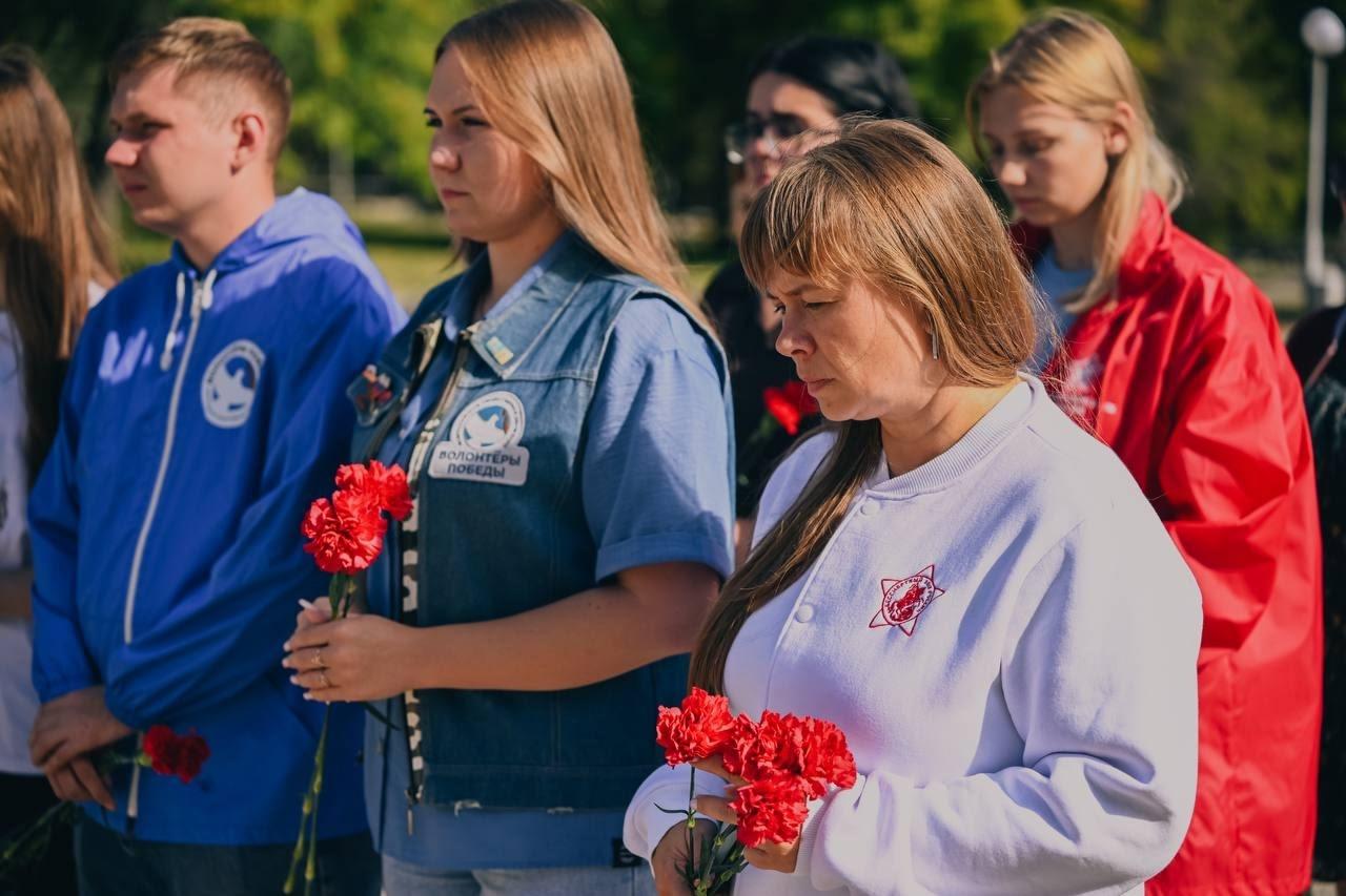 В Белгороде активисты регионального отделения Бессмертного полка России и других общественных организаций провели церемонию возложения цветов к мемориалу в парке Памяти и почтили минутой молчания всех жертв этой страшной войны.