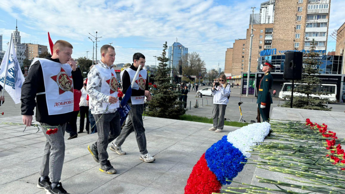 Мероприятия продолжились на Площади Советской армии, где состоялось возложение цветов к Мемориальному комплексу «Чёрный тюльпан», а также прошла концертная программа.