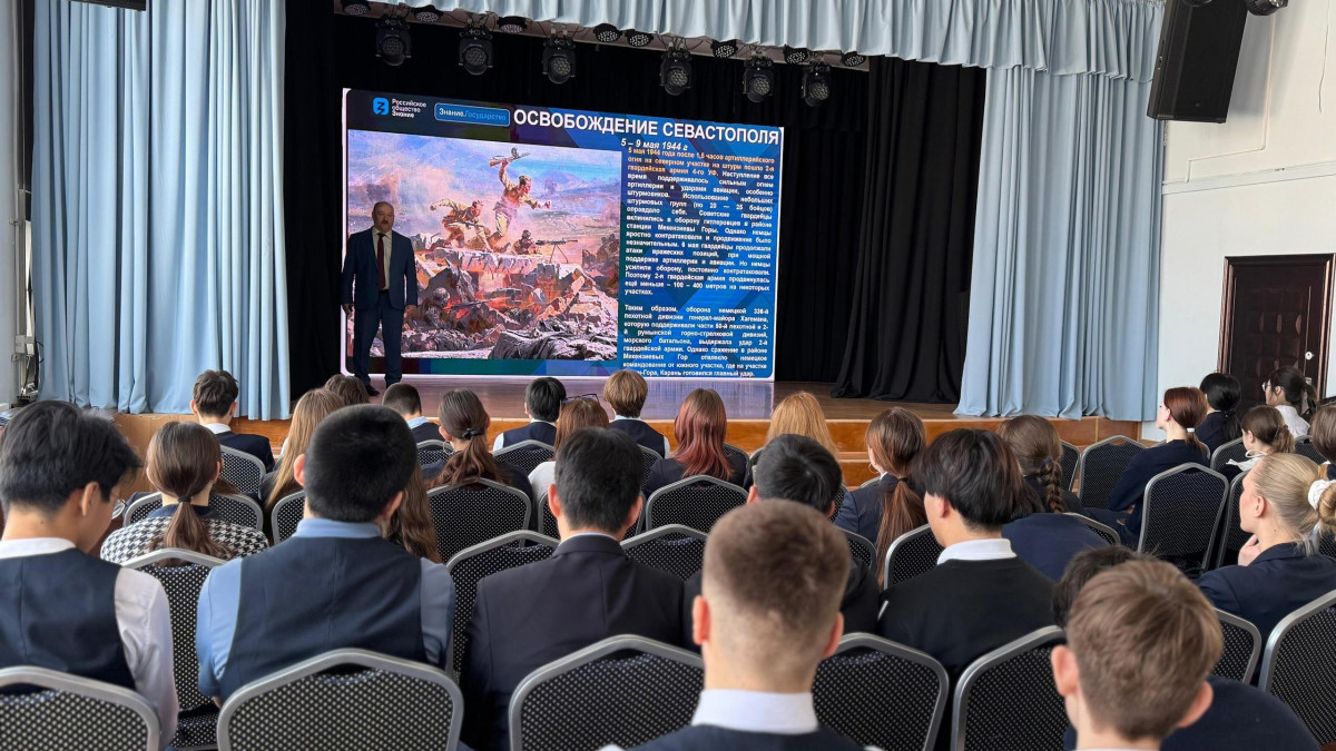 В Лицее №1 Южно-Сахалинска состоялся Урок мужества, посвященный героической истории Севастополя. Перед старшеклассниками выступил Андрей Фугенфиров, руководитель регионального штаба «Бессмертного полка России».