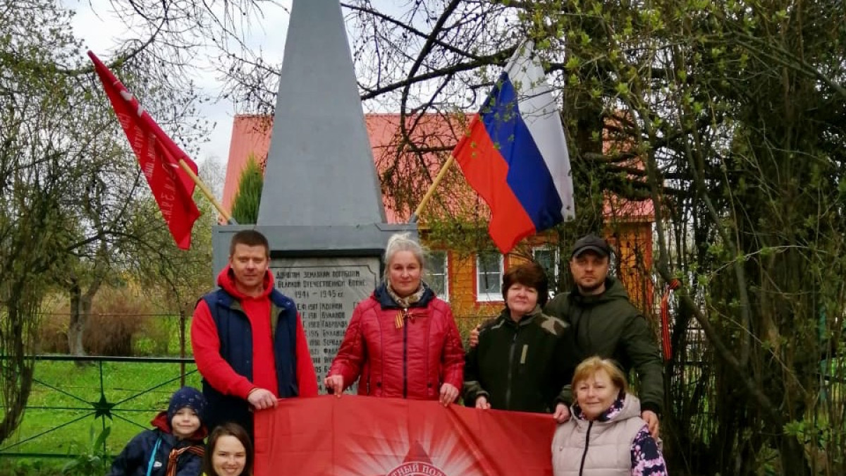 В этот же день в другом районе Дмитровского округа делегация Бессмертного полка России Московской области возложила цветы к мемориалу землякам в деревне Долгиниха и открыла там памятник участнику Великой Отечественной войны, великому артисту Владимиру Этушу.