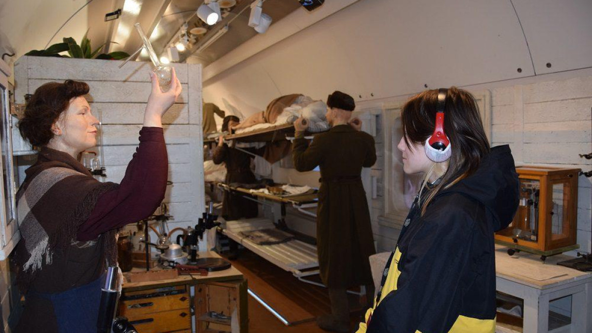 В Екатеринбург прибыл передвижной музей «Поезд Победы». Это уникальная иммерсивная инсталляция, размещенная в составе поезда из семи вагонов.