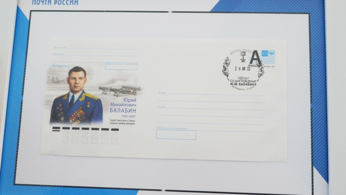 В честь 100-летия со дня рождения Героя Советского Союза Юрия Михайловича Балабина, уроженца Астрахани, УФПС Астраханской области и АО «Марка» изготовили конверт с литерой А и переводной штемпель специального гашения с портретом героя общим тиражом в 100 тысяч экземпляров. В торжественном мероприятии приняло участие региональное отделение Бессмертного полка России в Астраханской области.