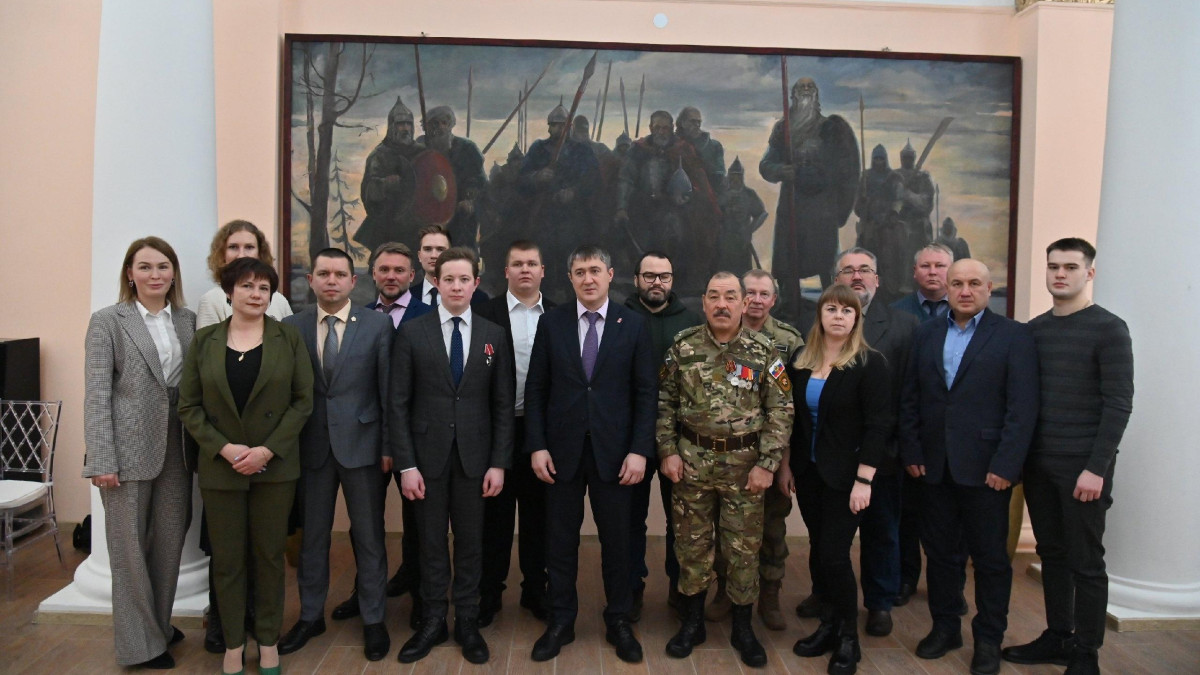 На встрече губернатор края вручил медаль «За храбрость» участнику специальной военной операции подполковнику Тагиру Хисматуллину. Он служил в добровольческом отряде «Тигр» в должности механика–водителя. К награде представлен за выполнение боевой задачи.