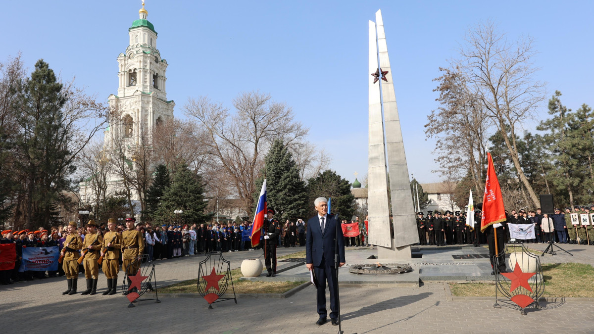 У Вечного огня мемориального комплекса «Братский садик» состоялось торжественное патриотическое мероприятие «Растим патриотов России», посвящённое Году единства народов России. Митинг объединил более 750 человек: ветеранов, представителей власти, поисковиков, казаков, юнармейцев, учащихся, студентов, курсантов, а также жителей города.