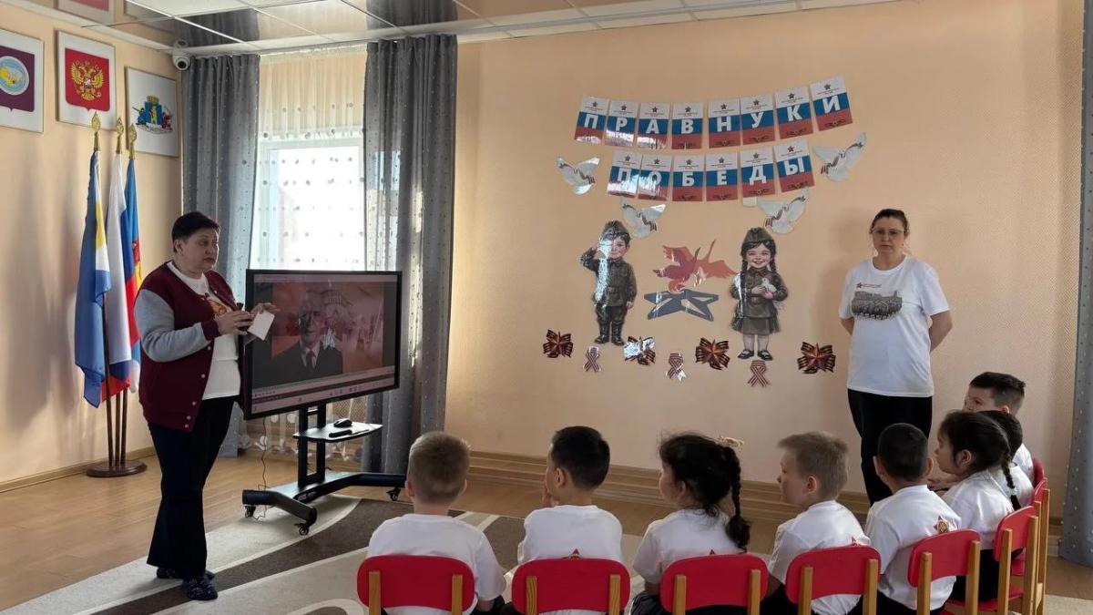 В патриотическом клубе «Правнуки Победы» детского сада «Оленёнок» прошла очередная встреча с куратором — Еленой Ручьевой , руководителем штаба регионального отделения Бессмертного полка России в Чукотском АО. Она регулярно встречается с ребятами и проводит тематические беседы и патриотические мероприятия, рассказывая о подвигах наших предков.