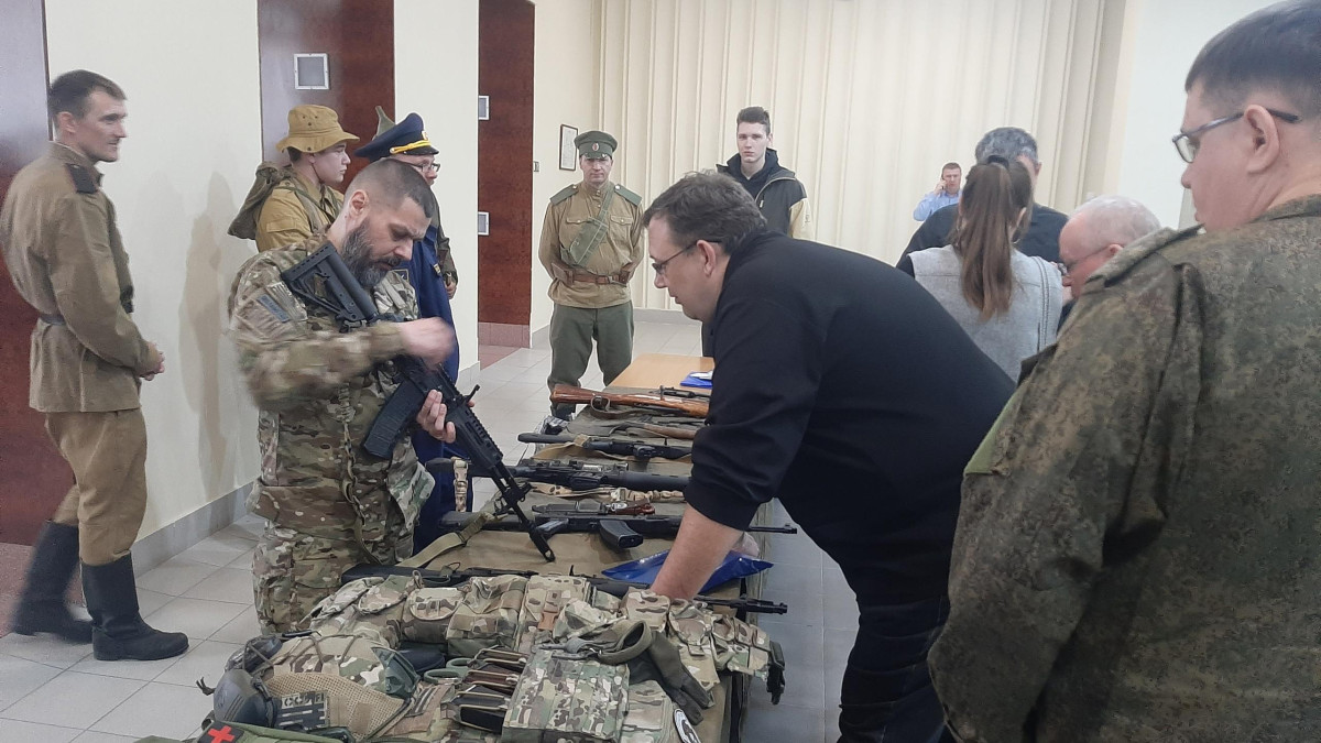 На инструкторско-методическом сборе с председателями призывных комиссий, военными комиссарами и начальниками отделений подготовки и призыва граждан на военную службу, Оренбургское отделение «Бессмертного полка России» и Русское общество «Пересвет» представили выставку «От героев былых времен».