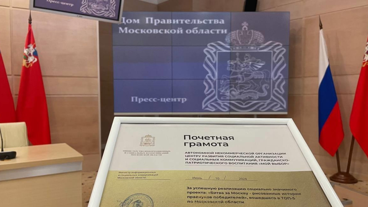 В Доме Правительства Московской области состоялось награждение некоммерческих организаций Подмосковья за лучшую реализацию проектов социальной направленности. Министерство информационных и социальных коммуникаций Московской области вручило почётные грамоты победителям. В их число вошёл проект регионального отделения «Бессмертного полка России» в Московской области и АНО «Мой выбор» - «Битва за Москву - рисованные истории правнуков победителей».