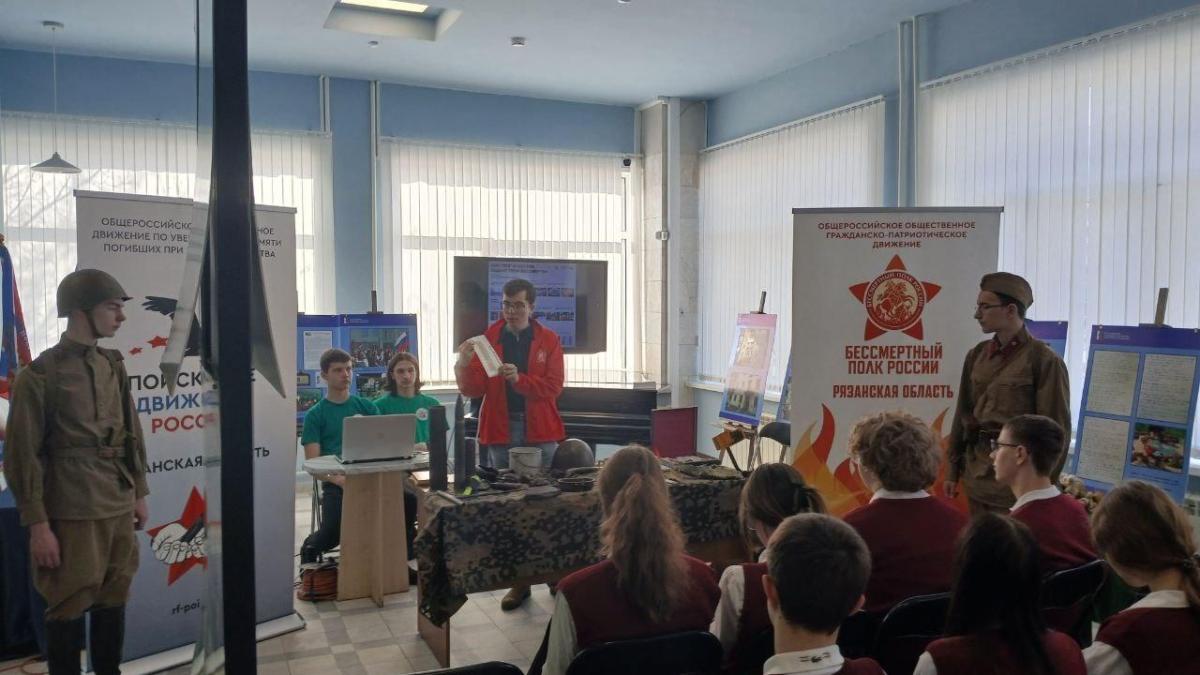 Ученики школы № 47 и первокурсники Рязанского технологического колледжа встретились с поисковиками и активистами движения Бессмертный полк России. Ребята узнали о разных сторонах работы поисковиков: изучение архивных документов и карт боевых действий, проведение разведки местности, полевые работы с использованием щупов и металлоискателей, восстановление имен героев.