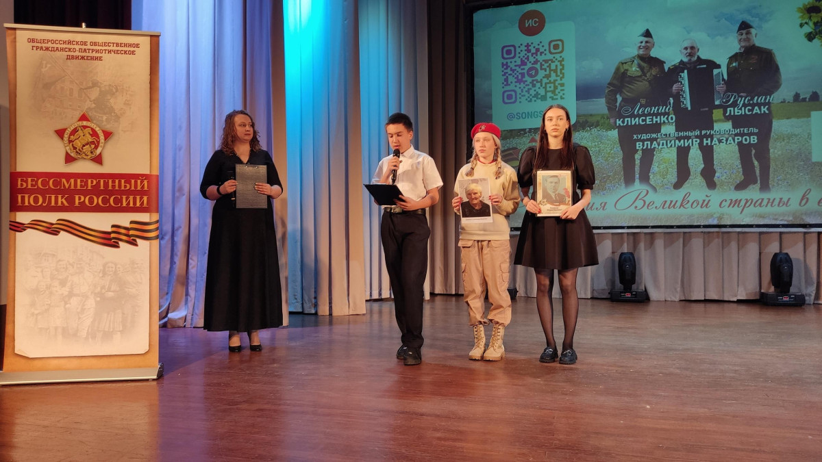 В рамках встречи звучали любимые песни военных лет: "Катюша", "Пилоты", "В землянке"... Зрители активно подпевали вокальному дуэту "Два дубки". Слова всех песен, исполняемых в музыкальной части встречи, собраны в отдельный Телеграм-канал, и все, кто не помнил текст, могли подглядывать его в нём.