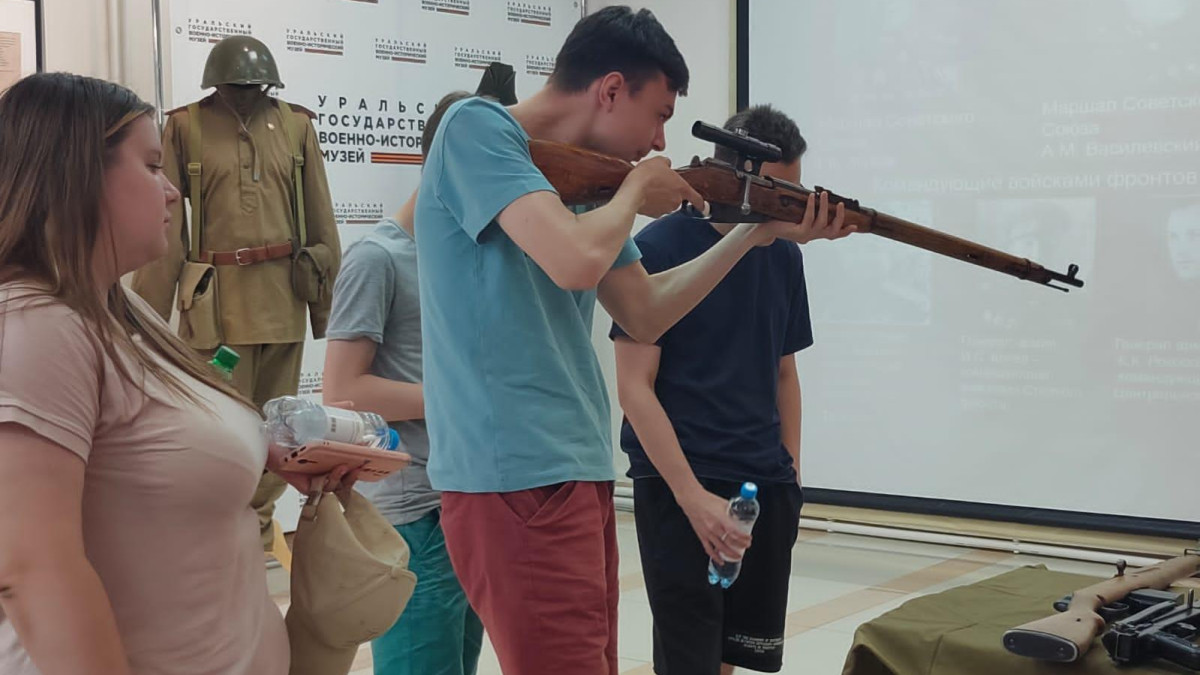 Также в музее ребят ожидала культурно-просветительская программа, посвященная 80-летию начала Курской битвы. Исторический экскурс в событие помог совершить методист музея - подполковник в отставке, ветеран железнодорожных войск Игорь Лындин. Также гости познакомились с экспозицией, посвященной боевому пути Уральского добровольческого танкового корпуса, сражению на Курской дуге, смогли взять в руки образцы стрелкового вооружения Красной Армии.