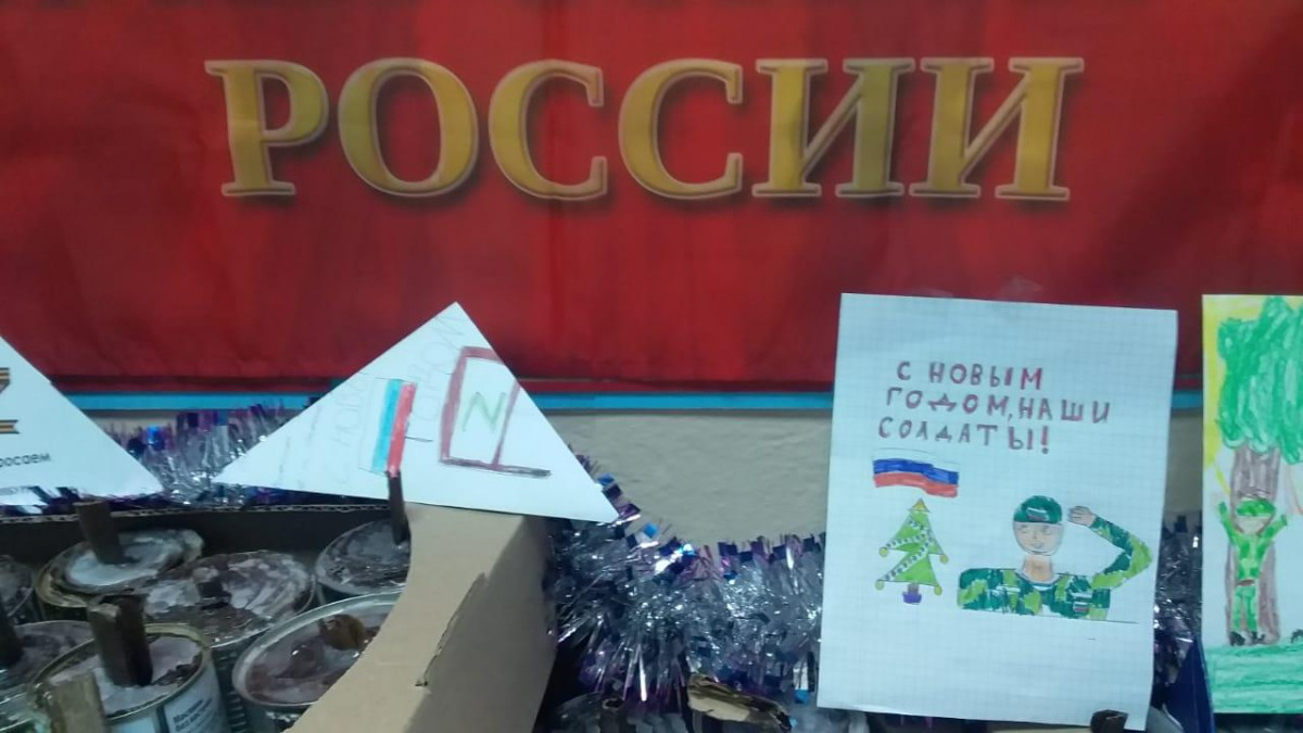 Накануне ребята на уроках труда самостоятельно изготовили окопные свечи, ученики младших классов оформили готовые свечи бумажным Дедом Морозом, снежинками и открытками, ученики старших классов написали участникам СВО письма со словами поддержки и поздравлениями с Новым годом.