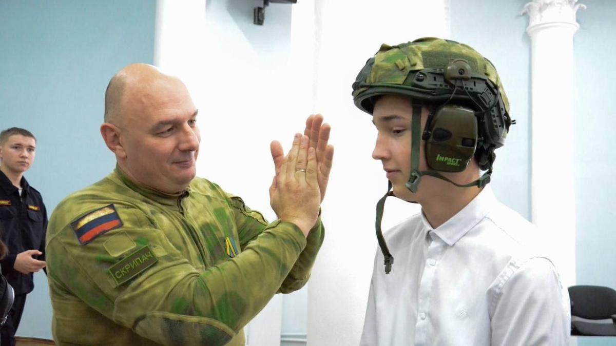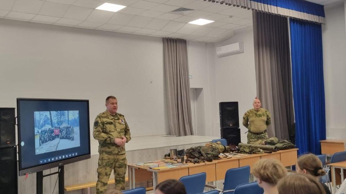 В гимназии №3 города Саратова прошел «Урок Мужества» для старшеклассников. Его провели участник СВО, руководитель исполкома регионального отделения Бессмертного полка России Андрей Бердников и волонтёр ассоциации «Твои Герои, Саратов» Дмитрий Молоков. Ребята с интересом послушали истории с зоны боевых действий, узнали о важности волонтерства и о том, что можно сделать для наших военных. А в конце ученики увидели и потрогали настоящие предметы военнослужащих и даже примерили боевую форму.