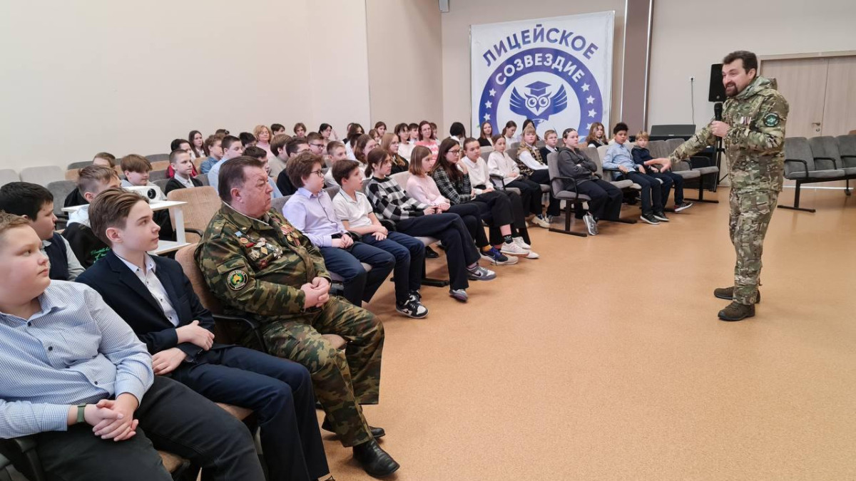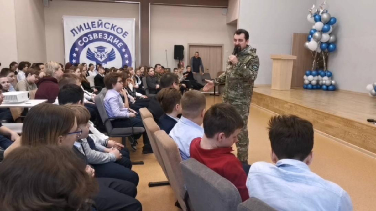 Урок мужества для учеников 3 лицея подмосковного Домодедово провёл член регионального штаба Бессмертного полка России в Московской области Олег Непряхин «Братцы, шутка на войне нынче ценится вдвойне» - конечно, в этот день были не только рассказы о событиях в зоне проведения Специальной военной операции, но и стихи и песни от артиста фронтовой агитбригады. Ещё в апреле победитель первого творческого конкурса памяти Василия Ланового Олег Валентинович пошёл поднимать боевой дух наших защитников словом и песней.