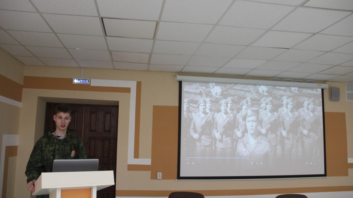 Студенты и представители студенческого поискового отряда «Подвиг» АГТУ выступили с презентациями и рассказали о героях-астраханцах. Рассказали о тех, чьи подвиги были удостоены высшего звания Герой России, о людях, которые каждый день проявляют мужество и героизм, защищая мирных жителей на Украине. Это настоящие примеры доблести и отваги, военнослужащие готовы отдать свои жизни ради победы над нацизмом и сохранения мира на земле.