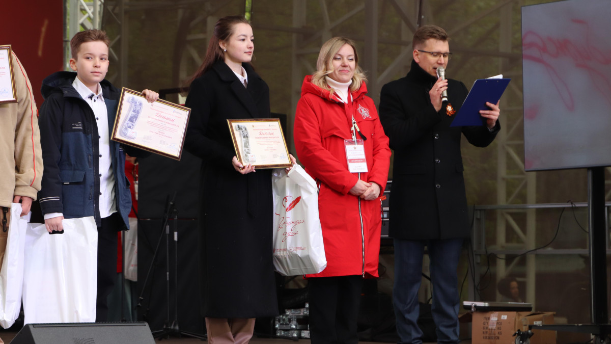 Представитель Исполкома Бессмертного полка России Мария Толстихина поздравила авторов лучших работ с Днем Победы, пожелала им покорения новых творческих высот и выразила надежду вновь увидеть всех через год, когда будут чествовать победителей конкурса «Пробуждая сердца»-2025.