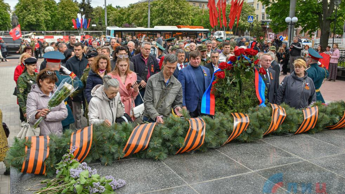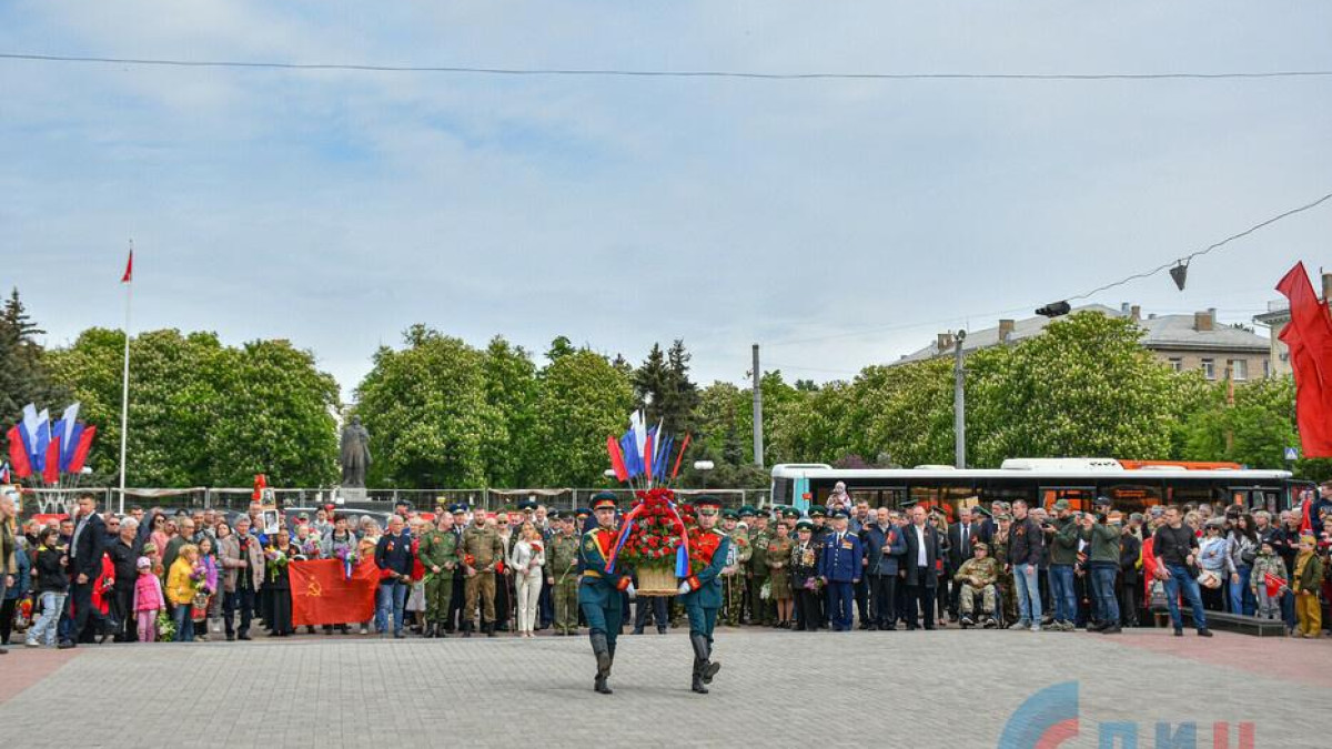 9 мая в центре Луганска, на площади имени героев Великой Отечественной войны собрались горожане, чтобы отметить День Победы. Дети и их родители, ветераны, молодежь с портретами своих прадедов и цветами, с георгиевскими лентами и красными знаменами Победы пришли почтить память героев Великой Отечественной войны.