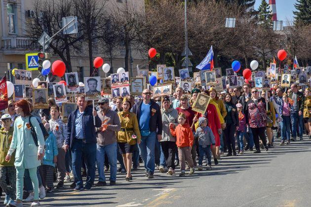 Граждане с гордостью несли по центральным улицам города и областным населённым пунктам портреты своих дедов и прадедов, участвовавших в различных оборонительных и наступательных операциях 1941-1945 годов.