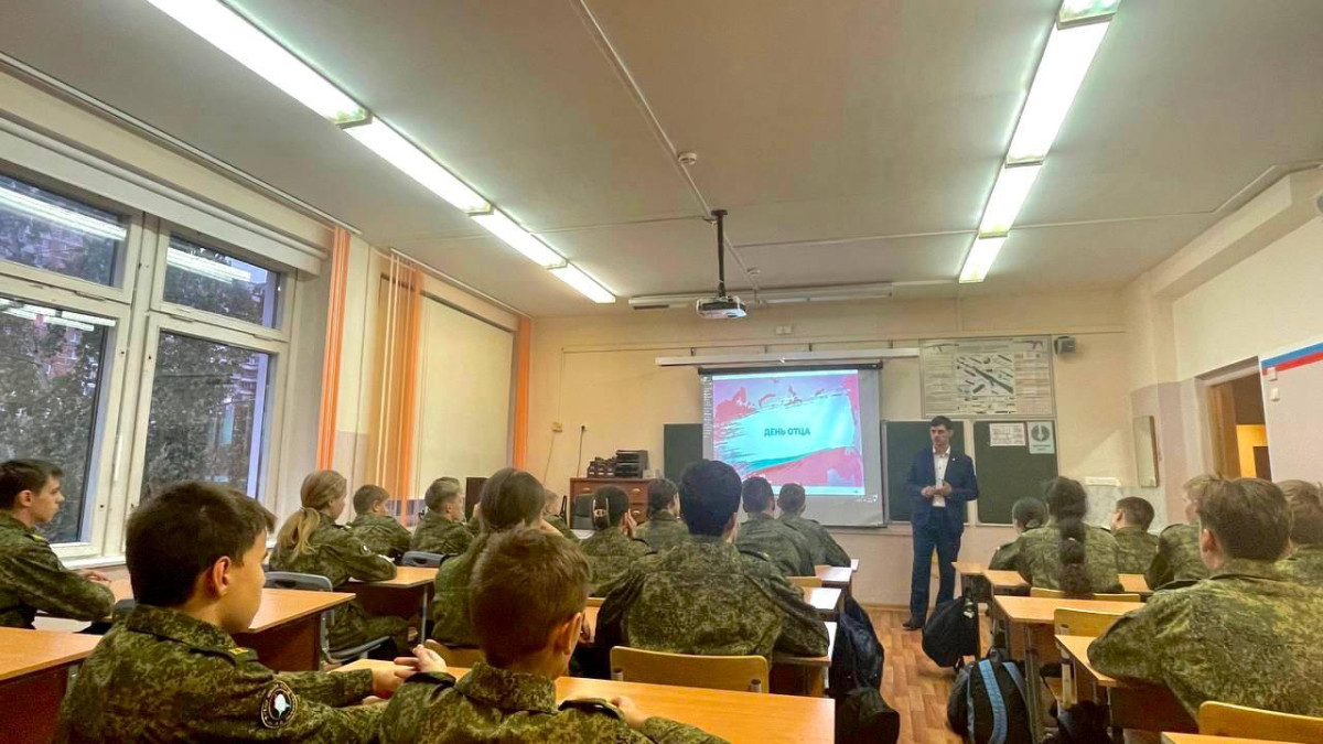 В преддверии Дня отца в школе № 1793 имени Героя Советского Союза А.К. Новикова прошёл классный час с отцом, руководителем штаба регионального отделения Бессмертного полка России в Московской области, членом Общественной палаты Московской области Валерием Анисимовым.