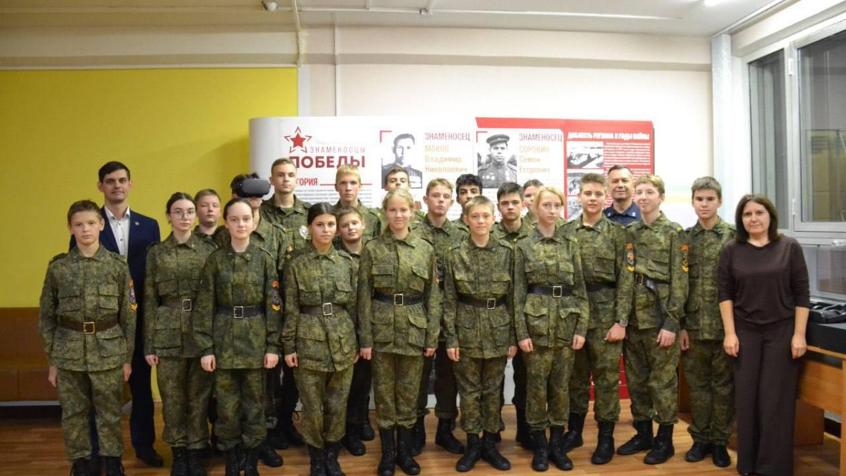 Уже более 4 лет региональное отделение Движения активно реализует проект «Неизвестный Знаменосец». Количество тех, кто водрузил своё виртуальное Знамя Победы в рамках проекта давно превысило 50 000 человек. К ним прибавились кадеты и педагоги школы. Дети с удовольствием узнавали истории водружения Красных Знамён в разных частях Рейхстага с 30 апреля по 1 мая 1945 года, многие из них впервые узнали, что знаменосцами Победы в Берлине 1945 года были десятки бойцов Красной Армии.