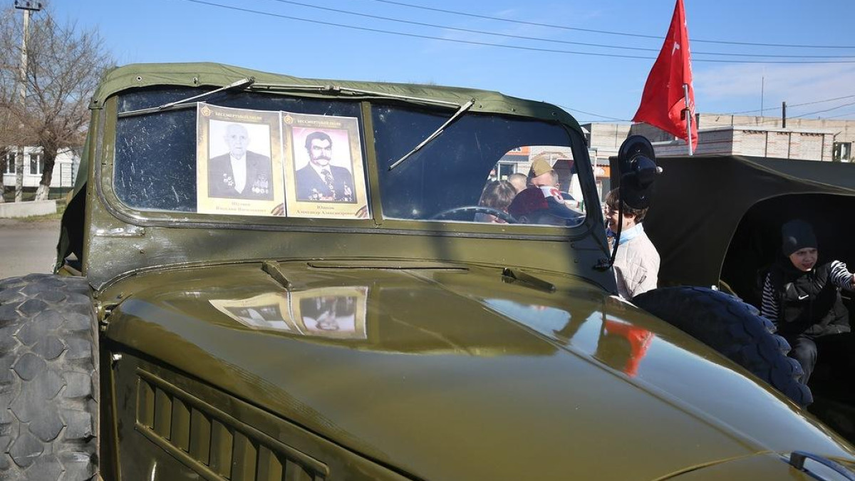 Не забывают своих родных, победивших в Великой Отечественной войне, и в Хакасии. По улицам Усть-Абакана проехал «Бессмертный автополк» с участием военной ретро-техники. В составе колонны была легендарная «Катюша» - советская боевая машина реактивной артиллерии. Жители города могли увидеть фото героев-земляков – на стеклах автомобилей были размещены портреты ветеранов Усть-Абаканского района.