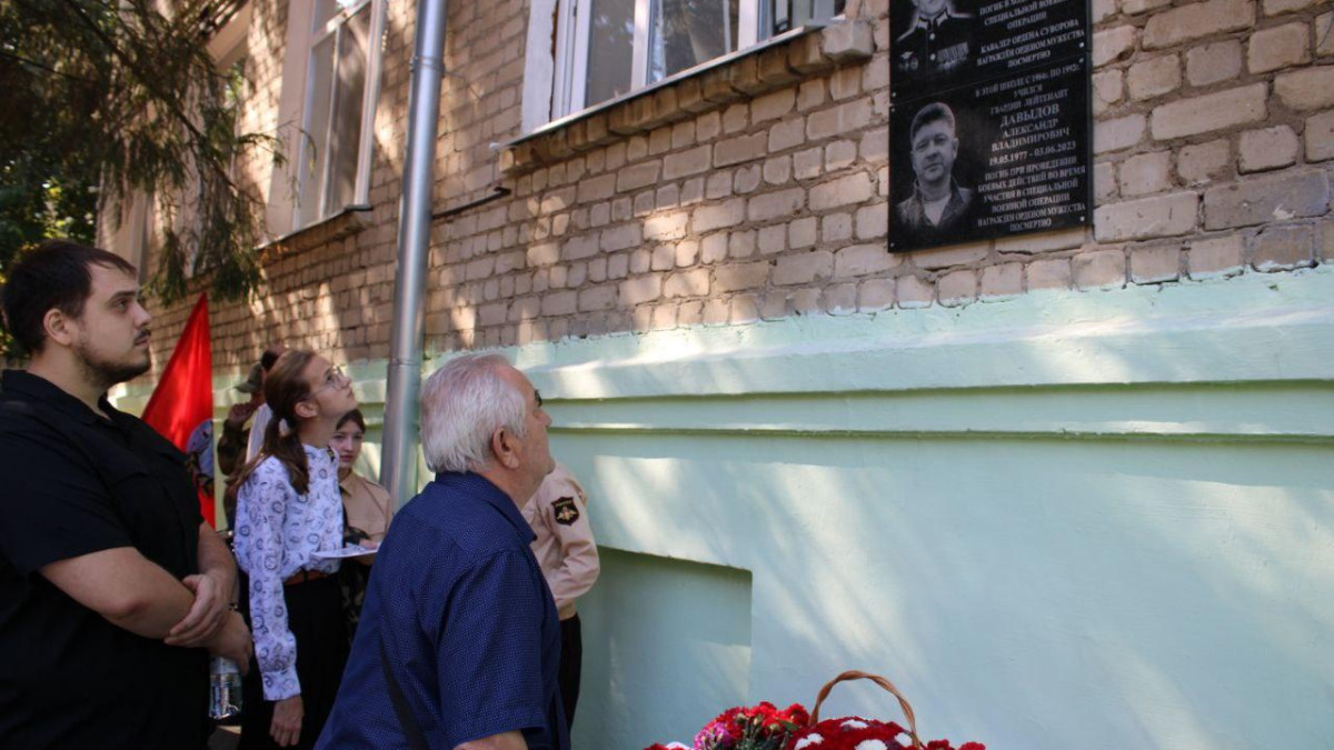 Мемориальная доска в память о выпускнике школы, участнике специальной военной операции Александре Давыдове была открыта на средней школе №100 города Саратова
