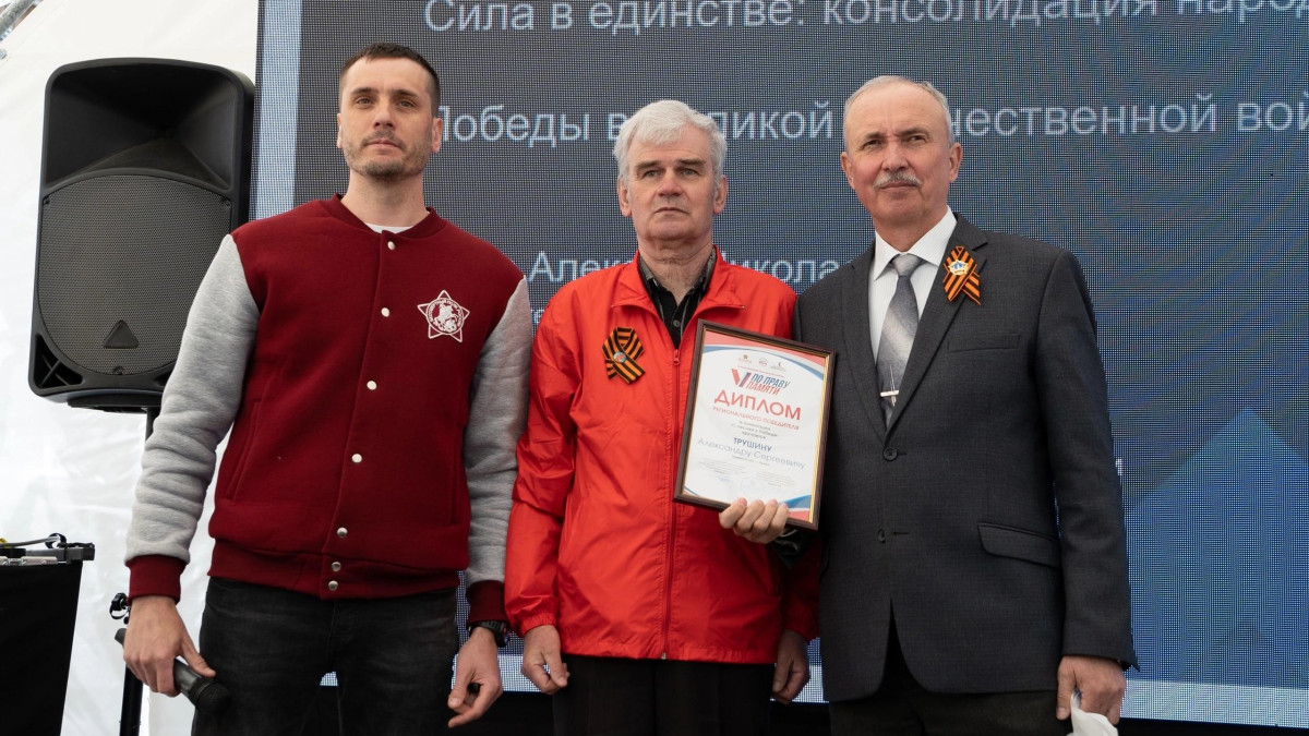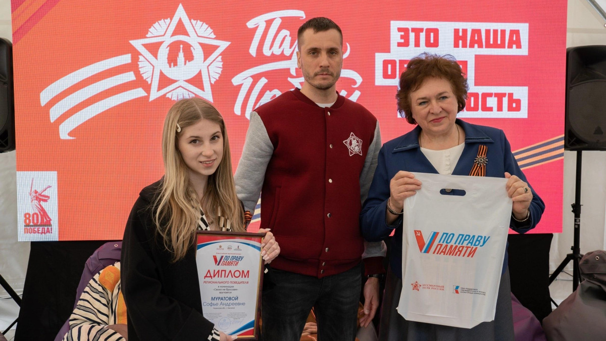 В Рязани региональных победителей чествовали на памятном мероприятии в день 80-летия Великой Победы. Дипломы и призы победителям из Рязанской области в торжественной обстановке вручили члены регионального штаба движения Бессмертный полк России Алексей Царев и Александр Барашин, а также сотрудник Центра региональных проектов и межрегиональных связей Рязанского государственного университета имени С.А. Есенина Наталья Семкина.