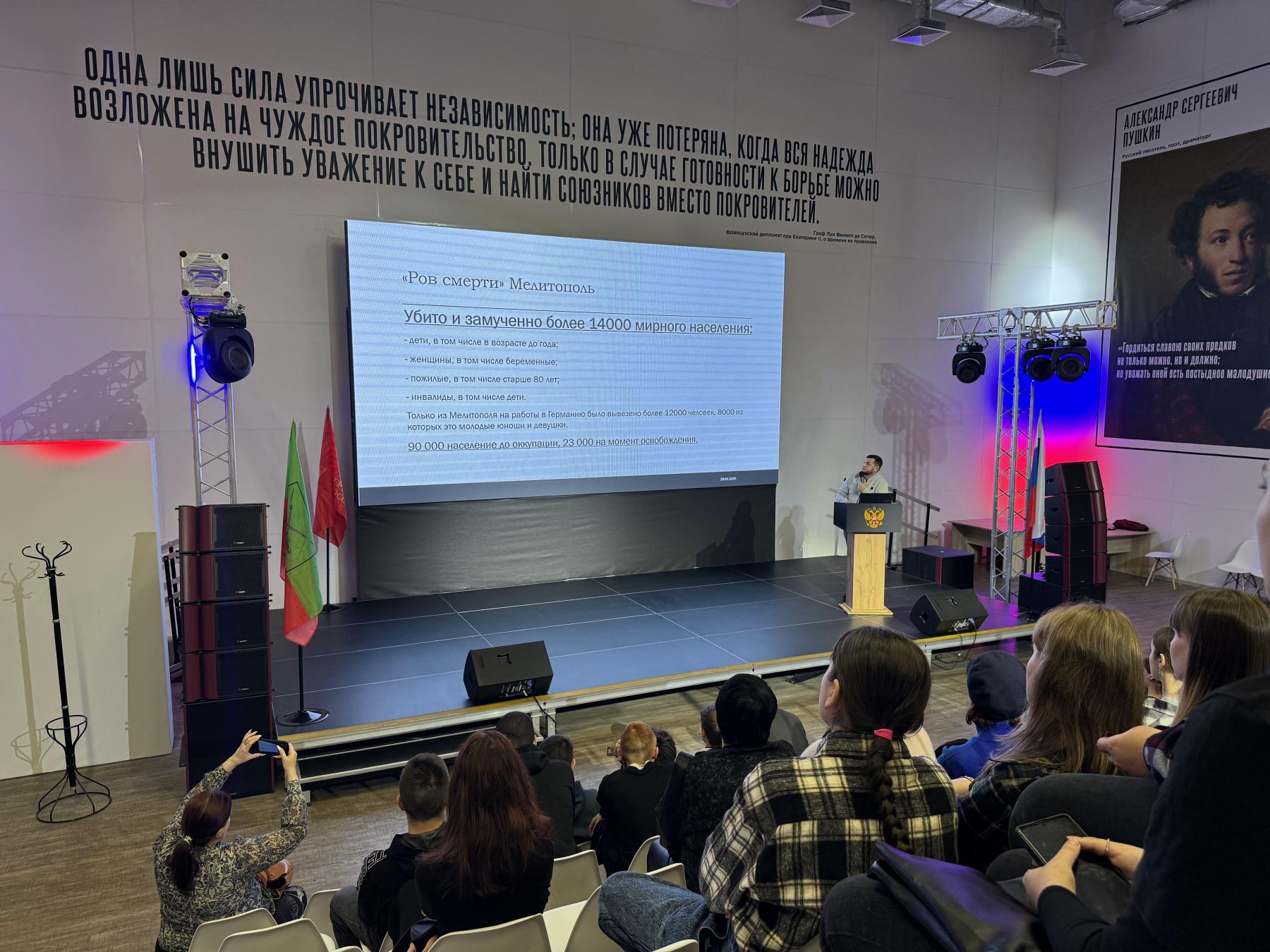 В Мелитополе открылась выставка, посвящённая геноциду советского народа нацистами в годы Великой Отечественной войны. Особое внимание уделили геноциду населения на территории Запорожской области. Лекцию на эту тему провёл руководитель штаба регионального отделения Бессмертного полка России в Запорожской области Константин Шляхов. Он рассказал о трагедии «Ров Смерти» в селе Константиновка, где во время оккупации фашистскими войсками были убиты сотни гражданских, включая евреев.