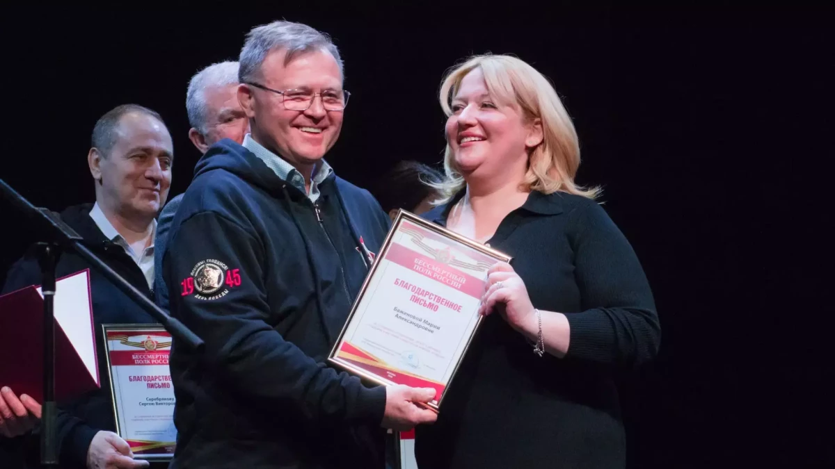 Перед мероприятием руководитель штаба Регионального отделения ООД "Бессмертный полк России" в г.Москве Михаил Грушин, Первый заместитель начальника московского штаба "ЮНАРМИИ" Владимир Кайгородов и Ветеран боевых действий, участник СВО Александр Шелковой вручили благодарственные письма волонтерам, помогающим фронту.