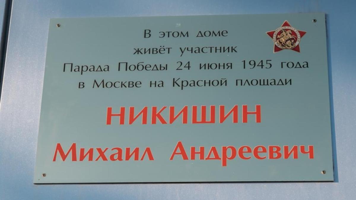 Ветеран принимал участие в историческом Параде Победы в Москве на Красной площади 24 июня 1945 года, и об этом гласит памятная табличка, установленная в Тюмени на доме, где проживает воин-победитель.