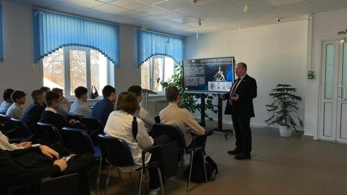 Он отметил, что День Героев Отечества — это памятная дата России, которая отмечается ежегодно 9 декабря. Она установлена Федеральным законом Российской Федерации № 22-ФЗ от 28 февраля 2007 года «О внесении изменения в статью 1-1 Федерального закона «О днях воинской славы и памятных датах России» и рассказал старшеклассникам школы о том какие торжественные мероприятия прошли 9 декабря в Южно-Сахалинске.