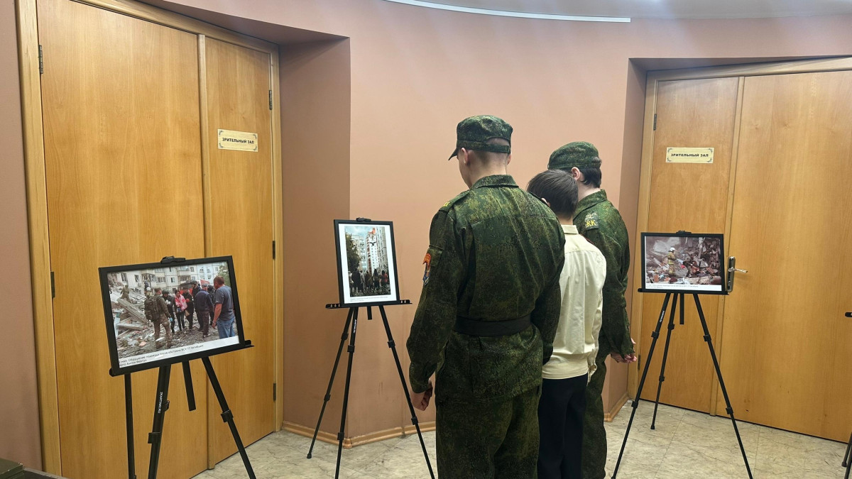 Затем для ребят однополчане провели экскурсию по фотовыставке «Белгород в объективе» и по «Мастерской Победы» им. Героя России Александра Аксенова.