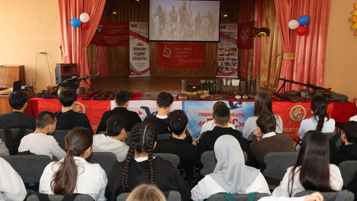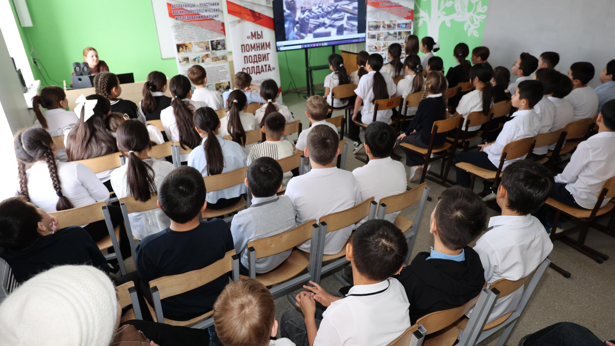 Более 2300 школьников и педагогов приняли участие в уроках «Мы помним подвиг солдата», которые провели руководитель штаба регионального отделения Бессмертного полка России Искандарбек Даиров и ветеран боевых действий Талгай Суюнчалиев. Они акцентировали внимание на личных судьбах защитников Отечества, а не только на исторических датах. Через архивную хронику и кадры о подвигах детей в Великую Отечественную, воинов-интернационалистов и современных героев, школьники увидели, что мужество не имеет срока давности.