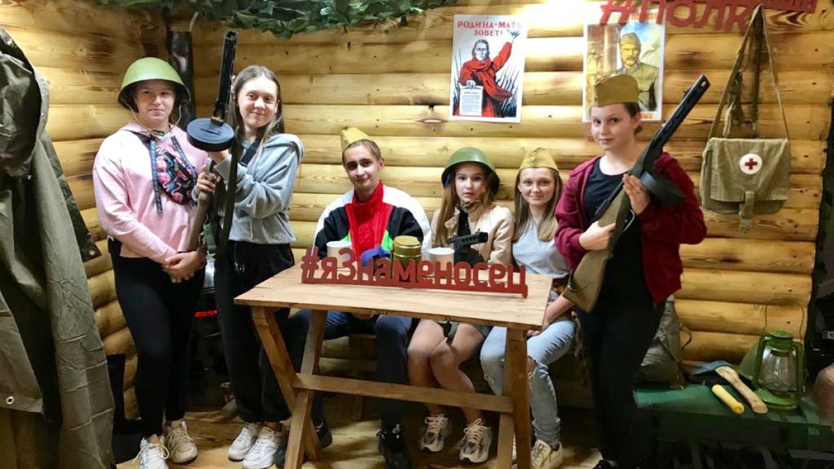 В ТРЦ «Июнь» в подмосковном Красногорске начала свою работу площадка Бессмертного полка России «Знаменосцы Победы», где можно сделать фото в блиндаже, узнать информацию о земляках-знаменосцах, а также самому виртуально водрузить Знамя Победы.