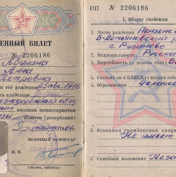 производстве. Замуж вышла 1 раз на фронте, но муж погиб. В мирной жизни своих