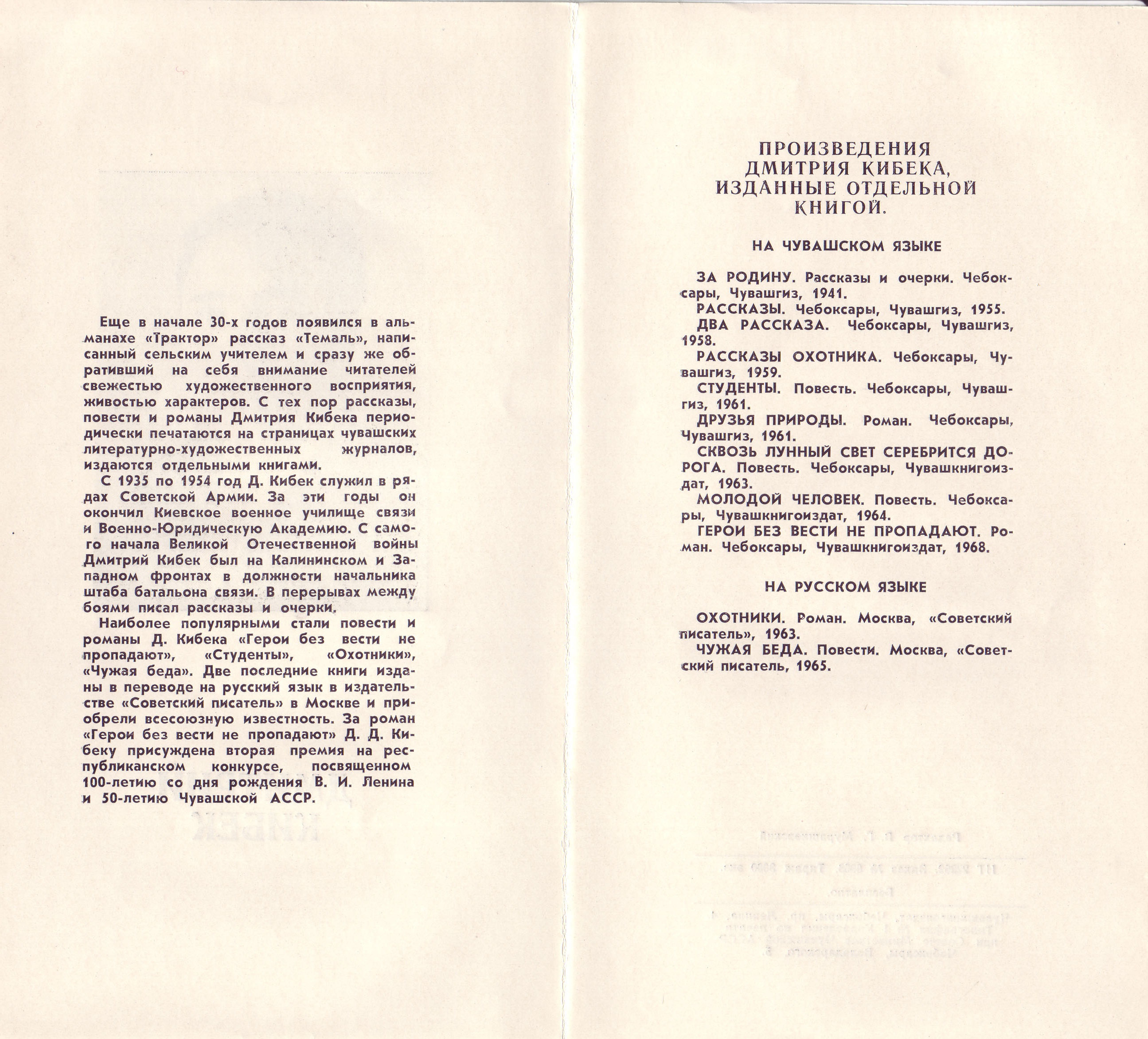 выступал на страницах фронтовой печати. В перерывах между боями писал рассказы и очерки о подвигах советских солдат и офицеров ("За Родину", "В разведке", "Цена человека"...). После войны написал роман «Герои без вести не пропадают». В нем рассказывается о совместной героической борьбе советских, польских и чехословацких партизан против войск фашистской Германии. В основу сюжета произведения положены действительные события, происшедшие в 1944-1945 гг. на территориях Польши, Чехословакии и Австрии. Псевдоним Дмитрия Афанасьевича Афанасьева - Митри Кибек.