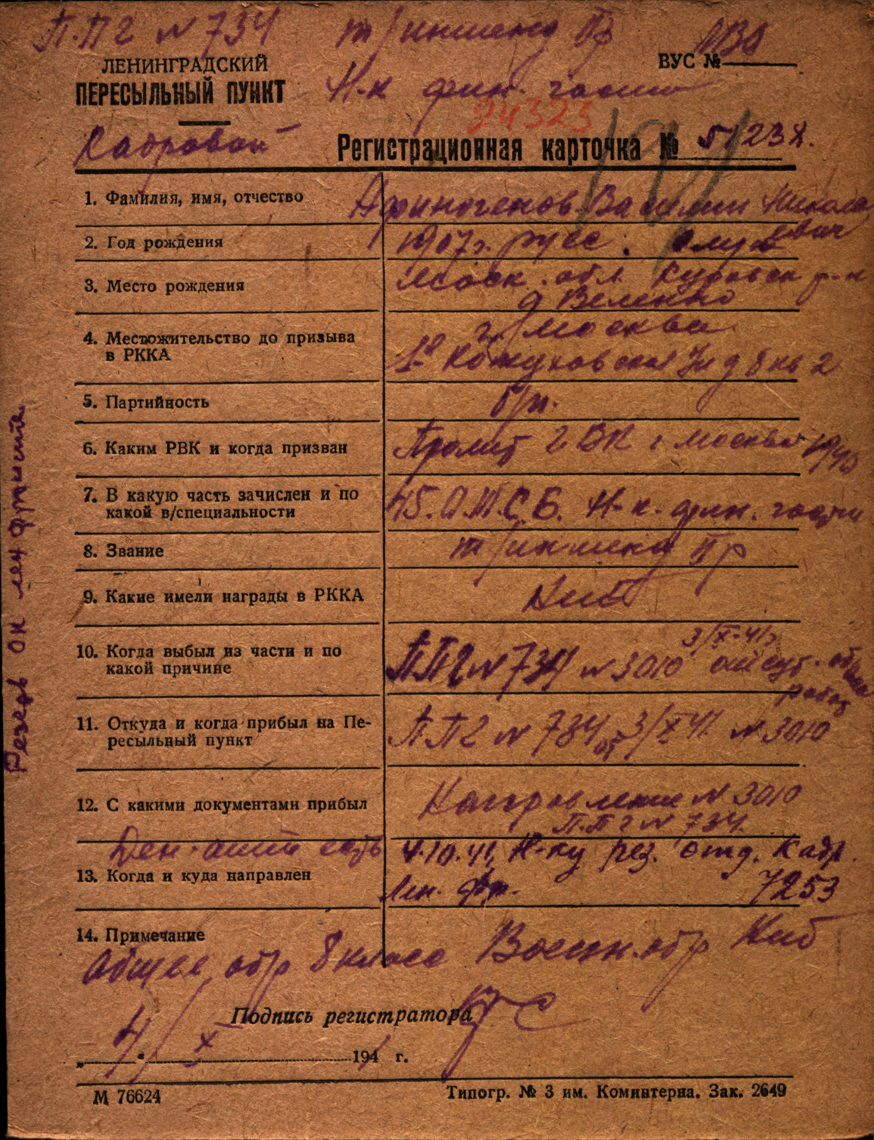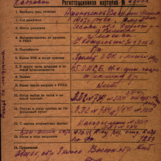 Проходил службу бухгалтером финансовой части 45-го отдельного строительного батальона Балтийского флота в г. Палдиски Эстонской ССР. После начала войны и эвакуации в Ленинград был зачислен в состав 204 стрелкового полка 10 стрелковой дивизии на должность зав делопроизводством и участвовал в боях за "Невский пятачок" на Ленинградском фронте. Получил ранение брюшной полости 1 декабря 1941 года, со 2 декабря был на излечении в 14 ОМСБ 86 сд, в котором умер 2 декабря 1941 года. Место захоронения не известно.