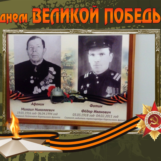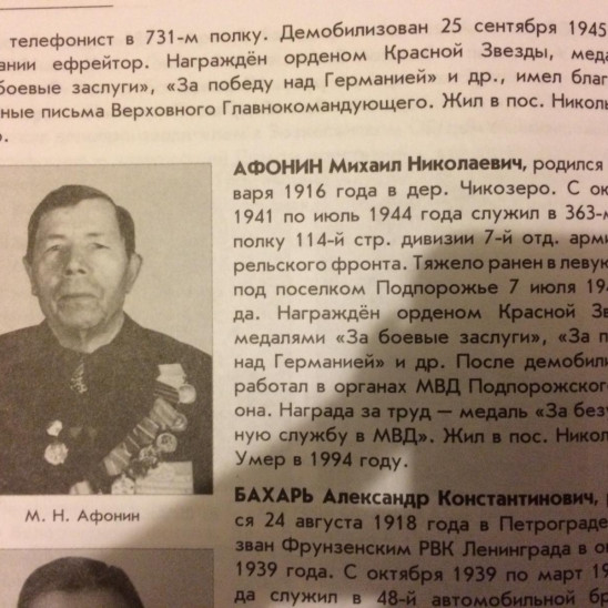 1941-1945 года был участником ВОВ был звании Старшего Лейтенанта 363 с/п Карельского фронта