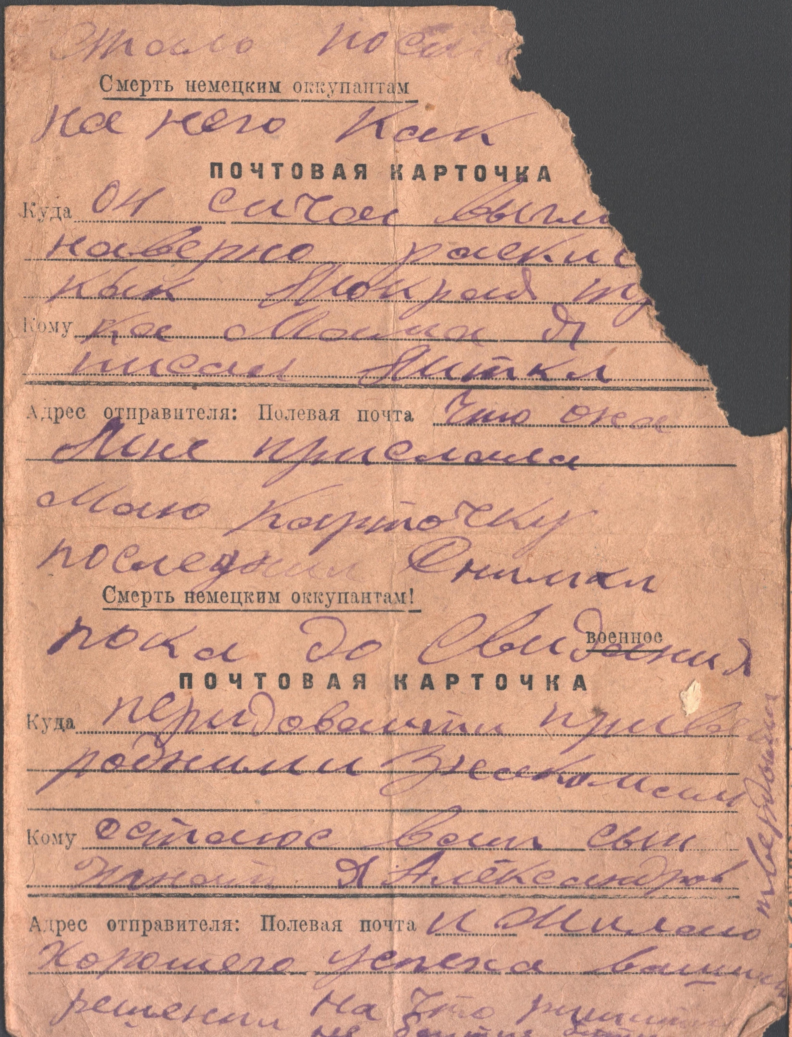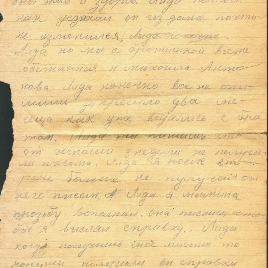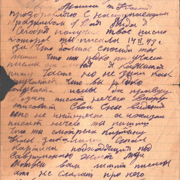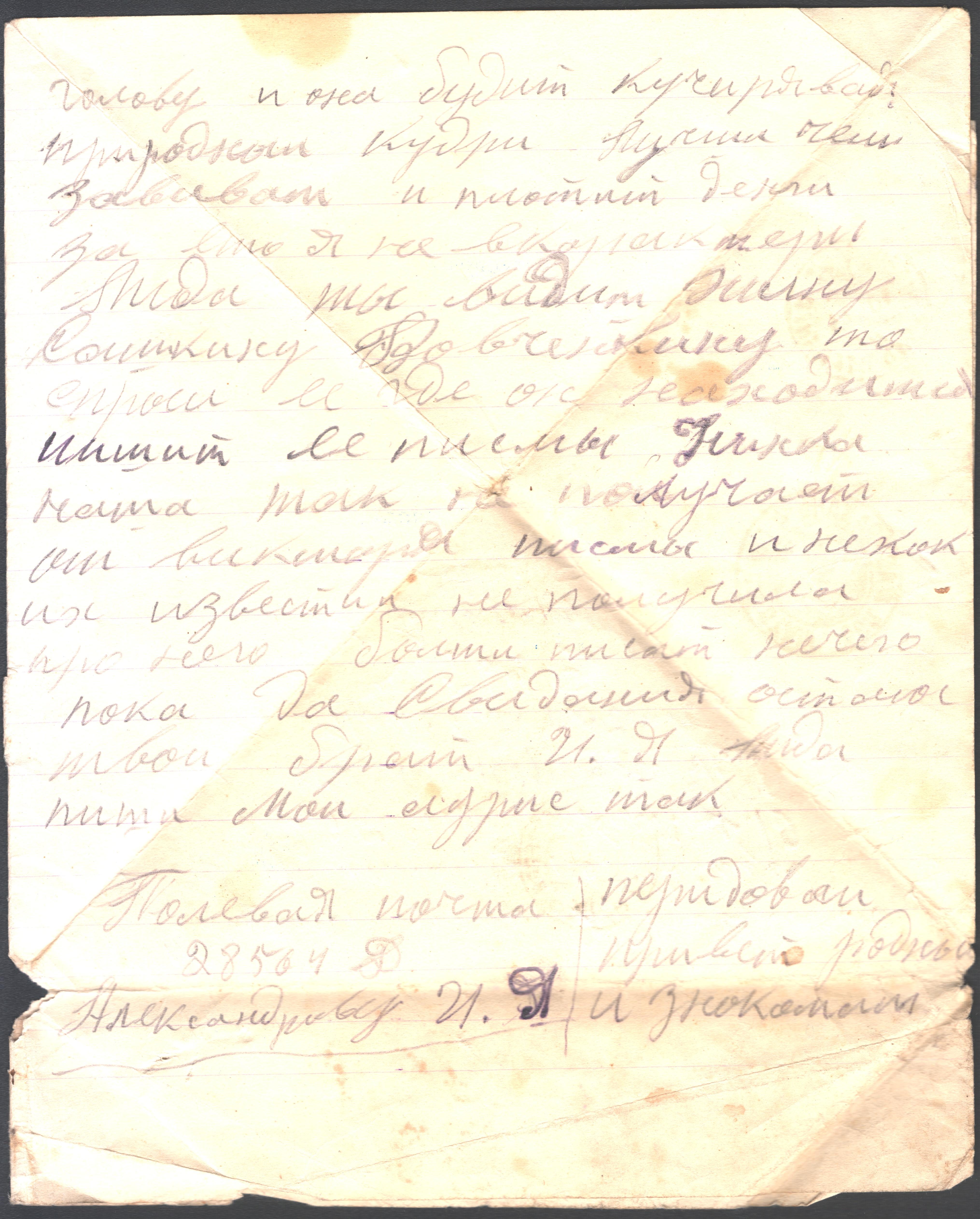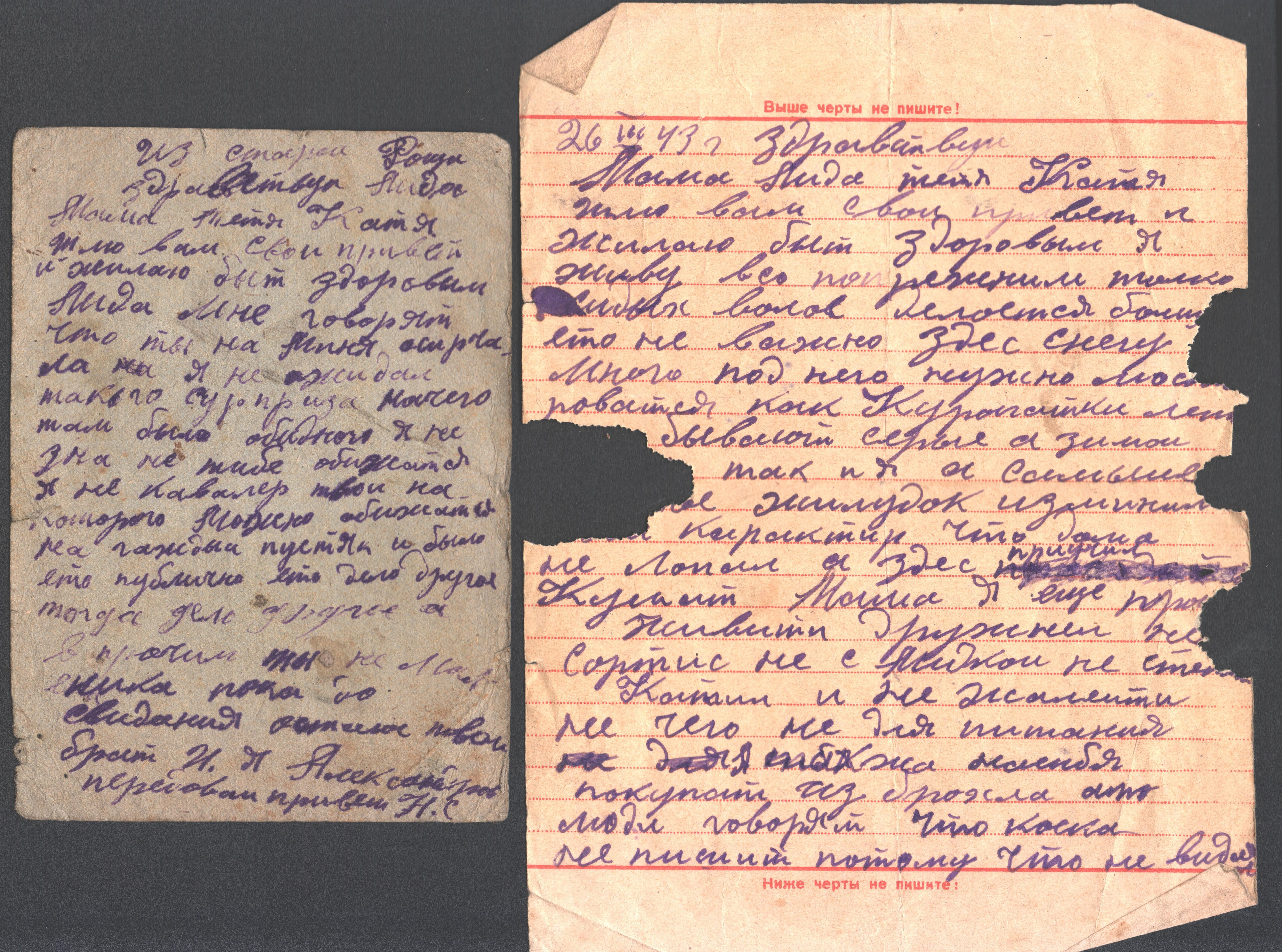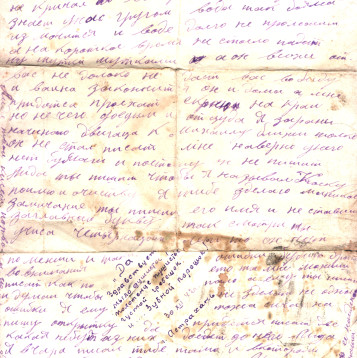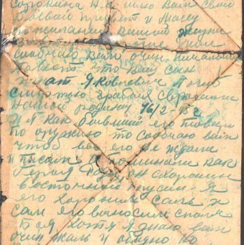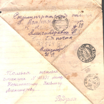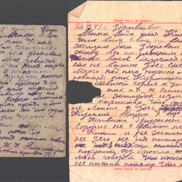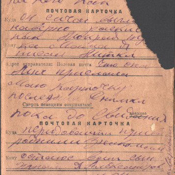чистые листы. Так, из-за экономии бумаги, сохранилось одно из писем Константина брату из Риги. Получив его, Игнат на обратной стороне листа написал своё письмо сестре Лиде и отправил его ей в тыл. Так это "двойное" письмо и дошло до наших дней.