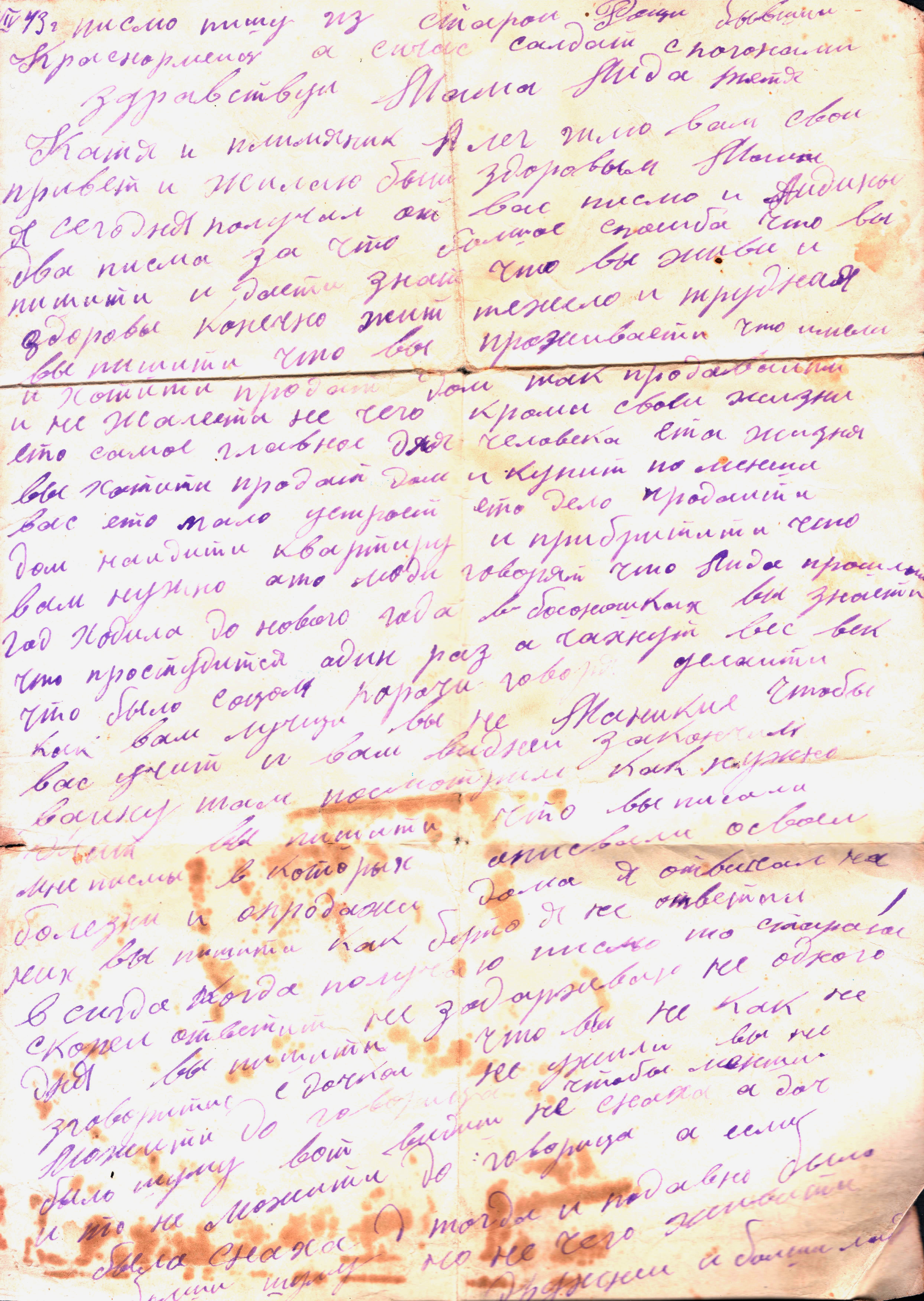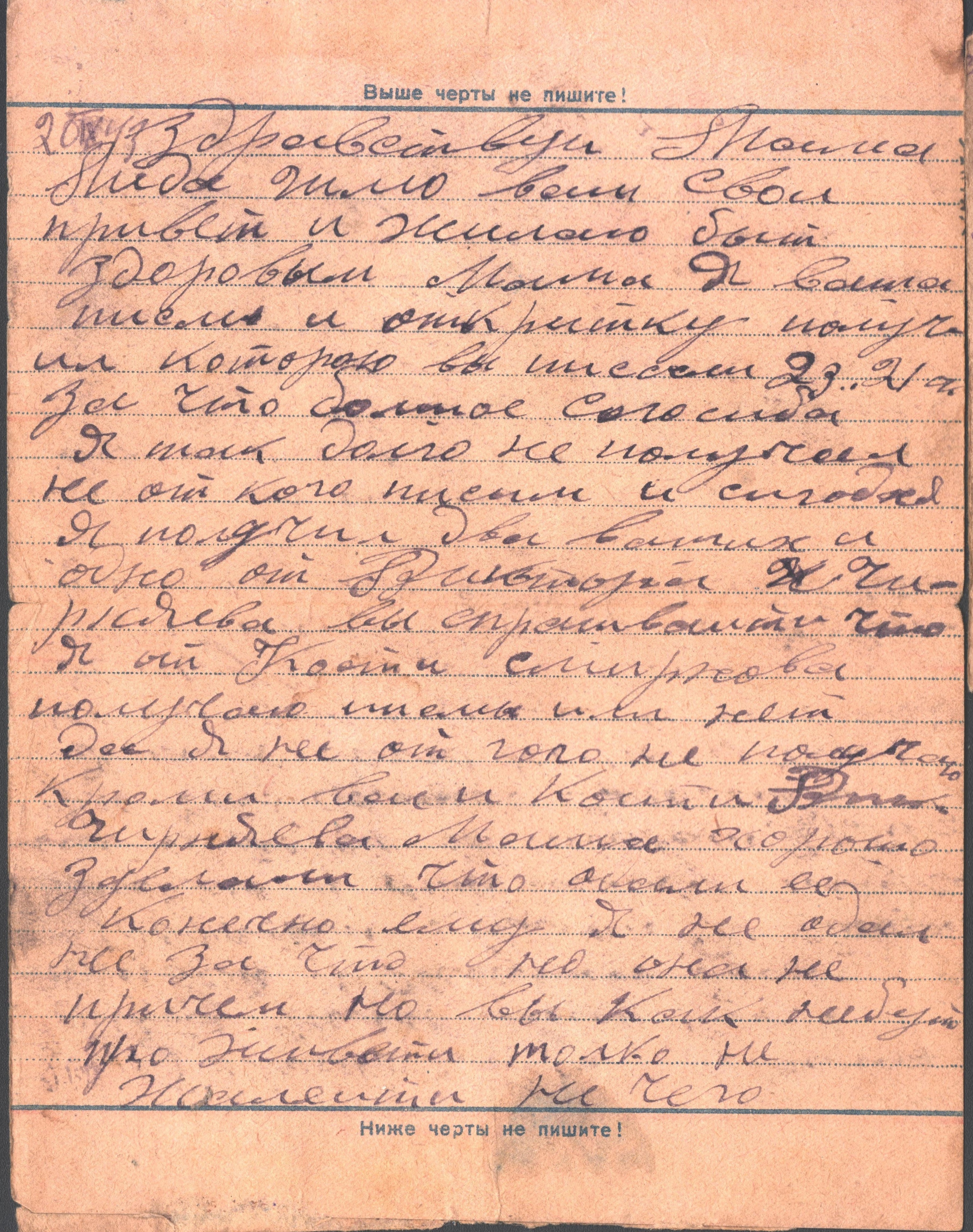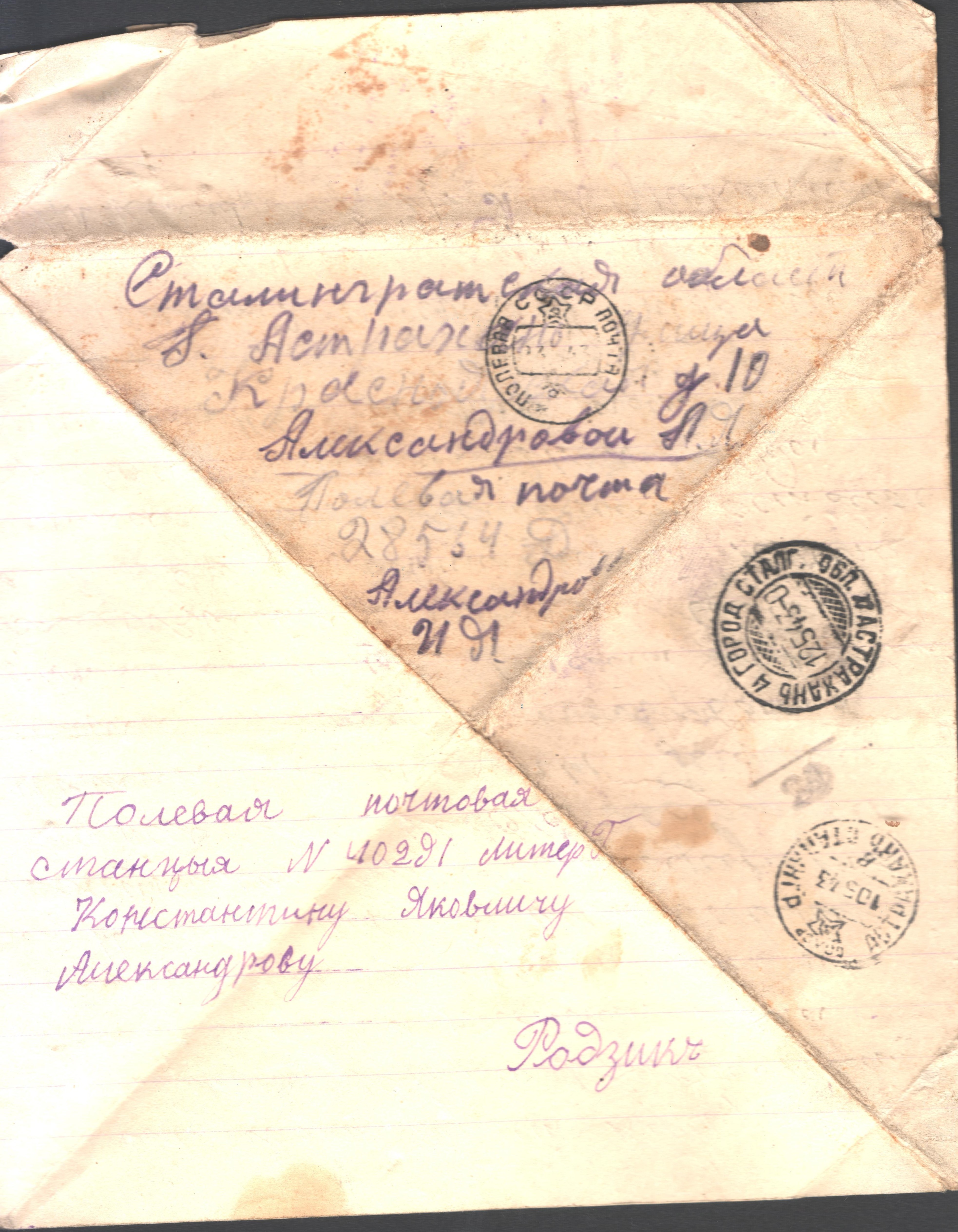 чистые листы. Так, из-за экономии бумаги, сохранилось одно из писем Константина брату из Риги. Получив его, Игнат на обратной стороне листа написал своё письмо сестре Лиде и отправил его ей в тыл. Так это "двойное" письмо и дошло до наших дней.