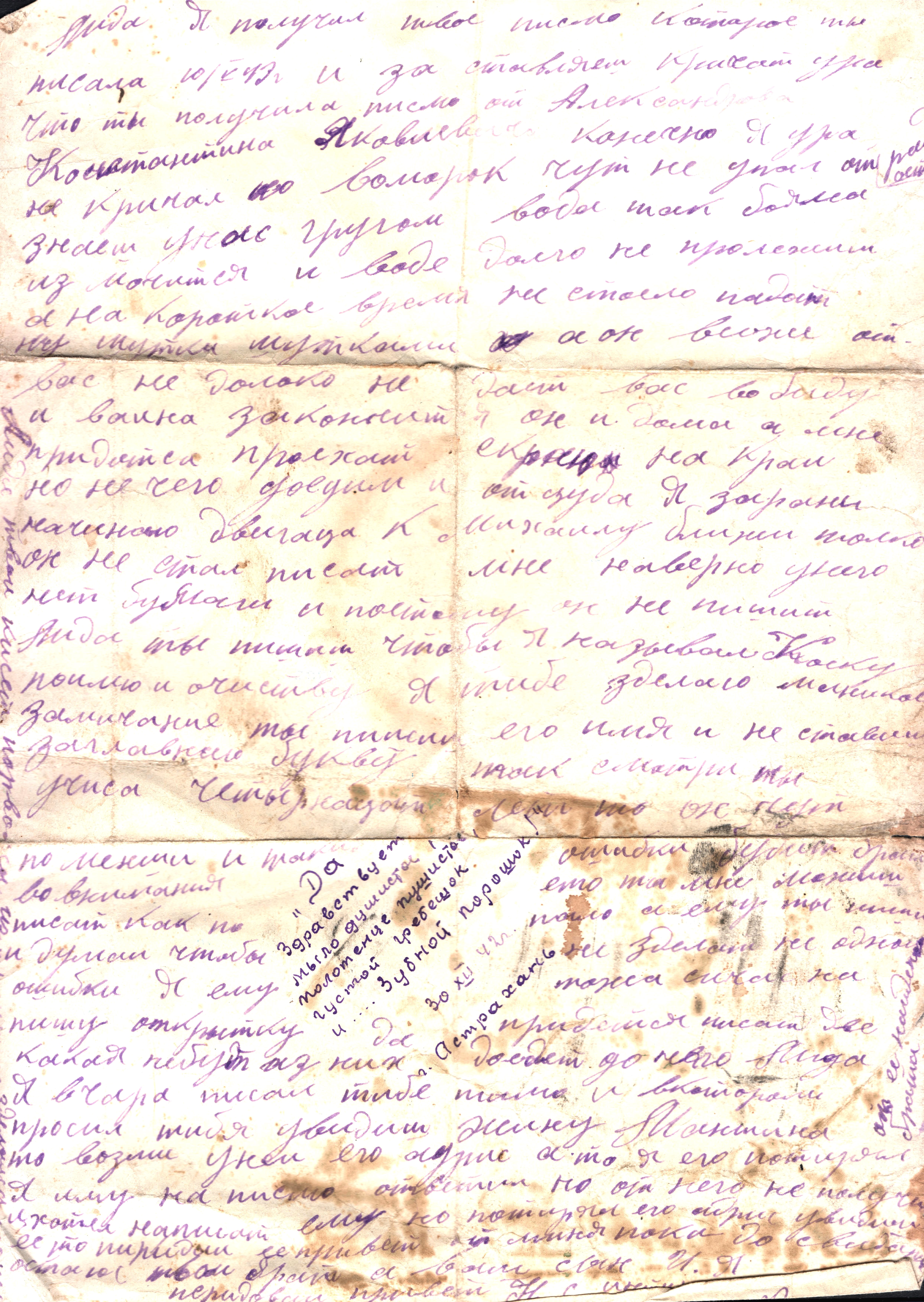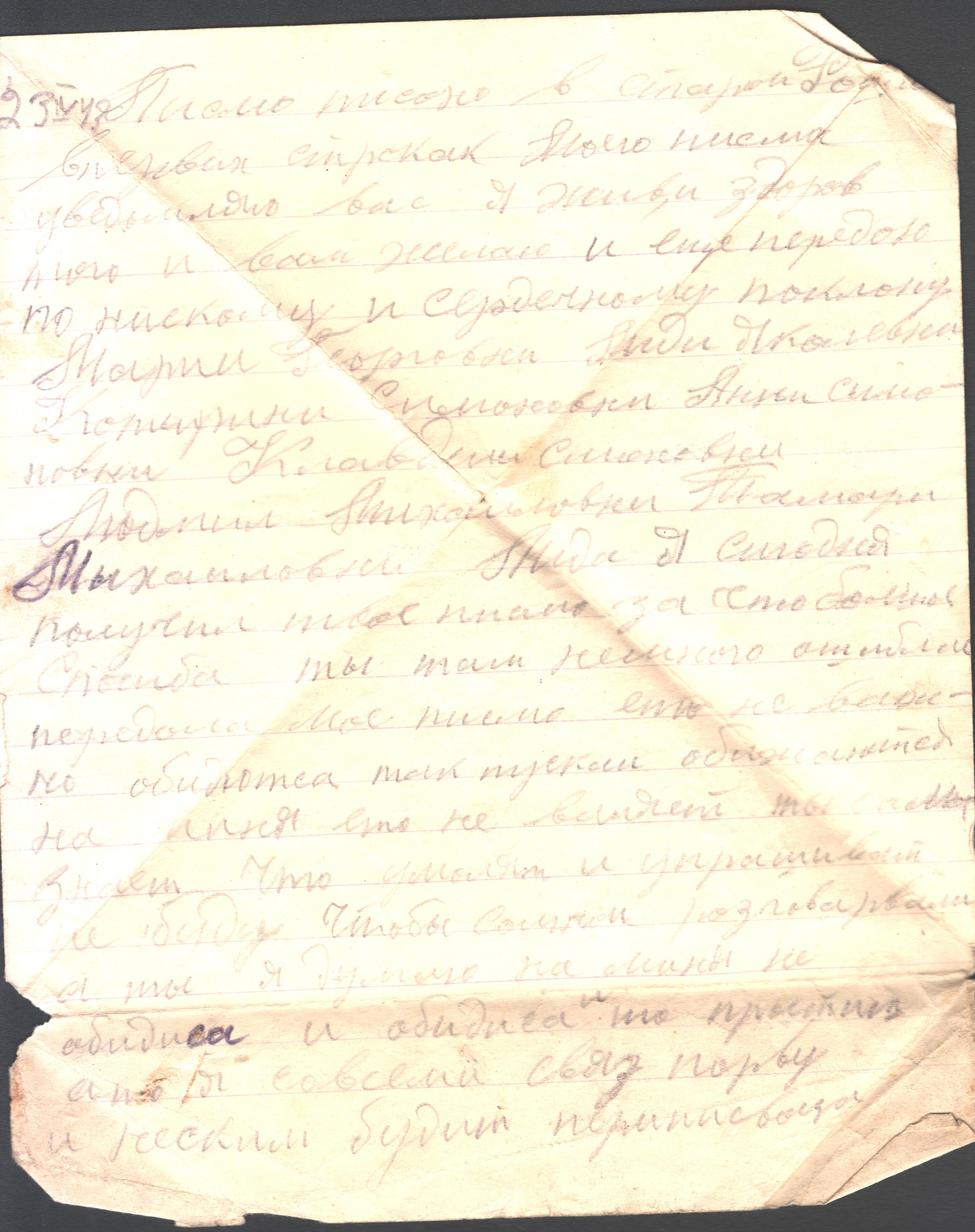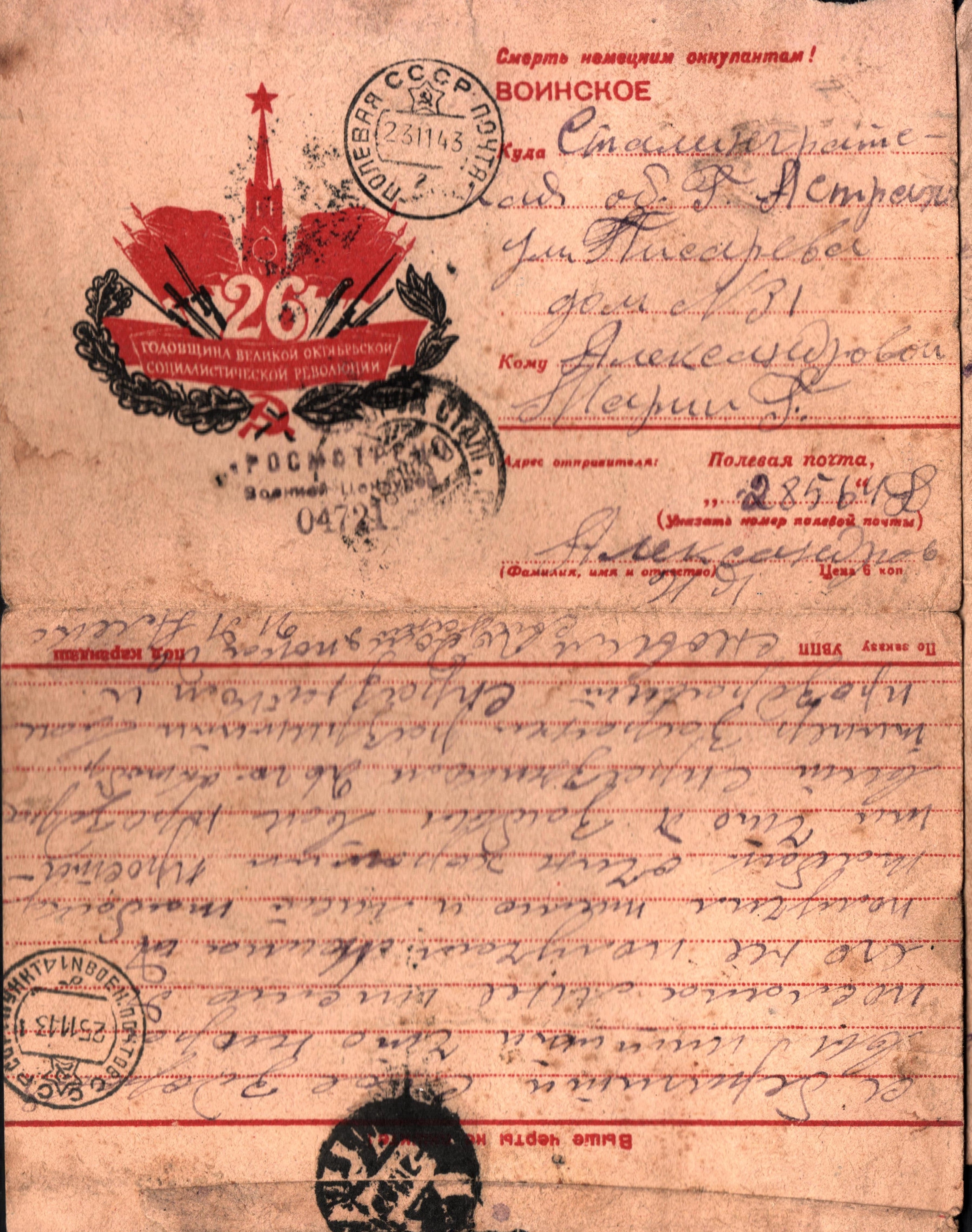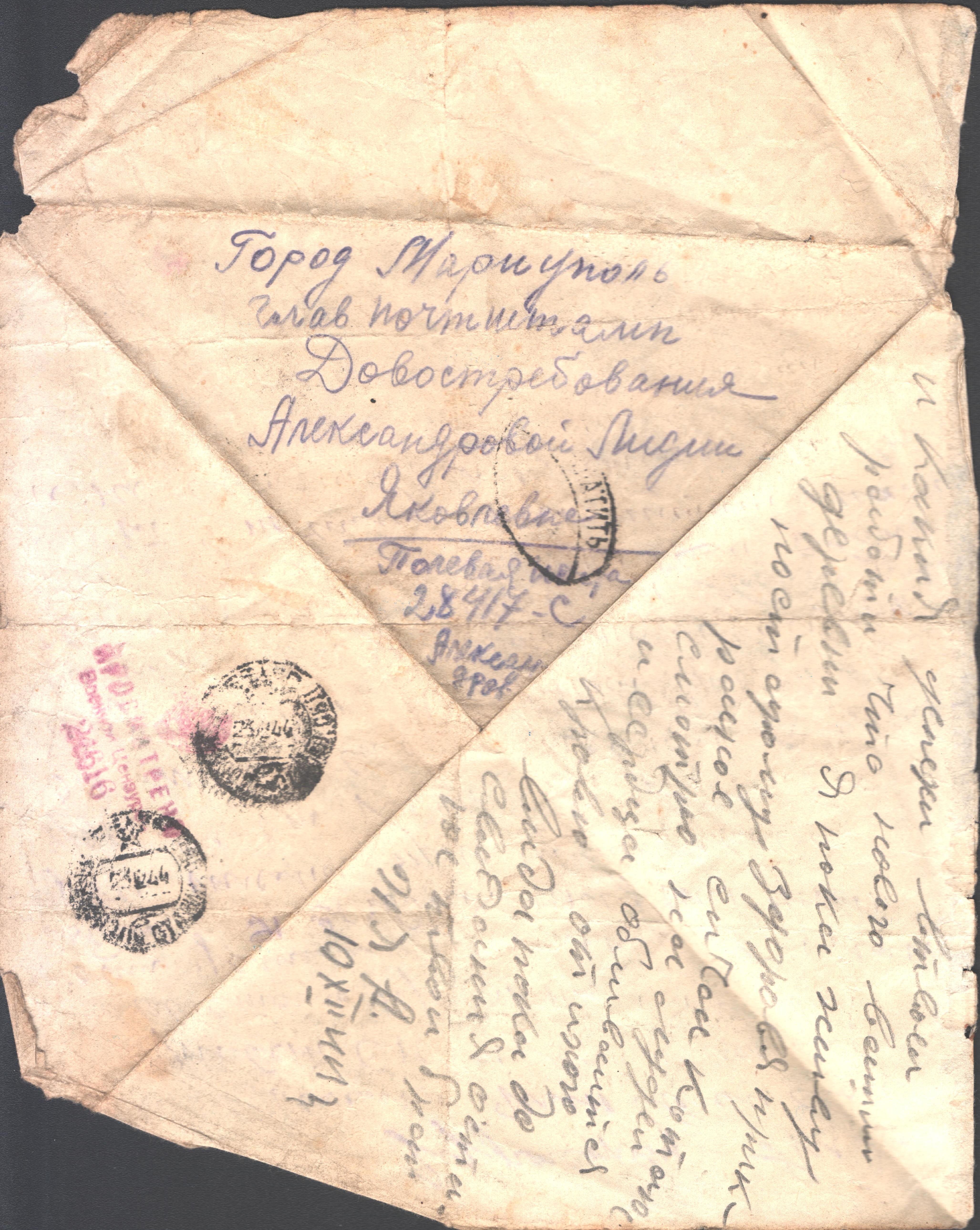 чистые листы. Так, из-за экономии бумаги, сохранилось одно из писем Константина брату из Риги. Получив его, Игнат на обратной стороне листа написал своё письмо сестре Лиде и отправил его ей в тыл. Так это "двойное" письмо и дошло до наших дней.