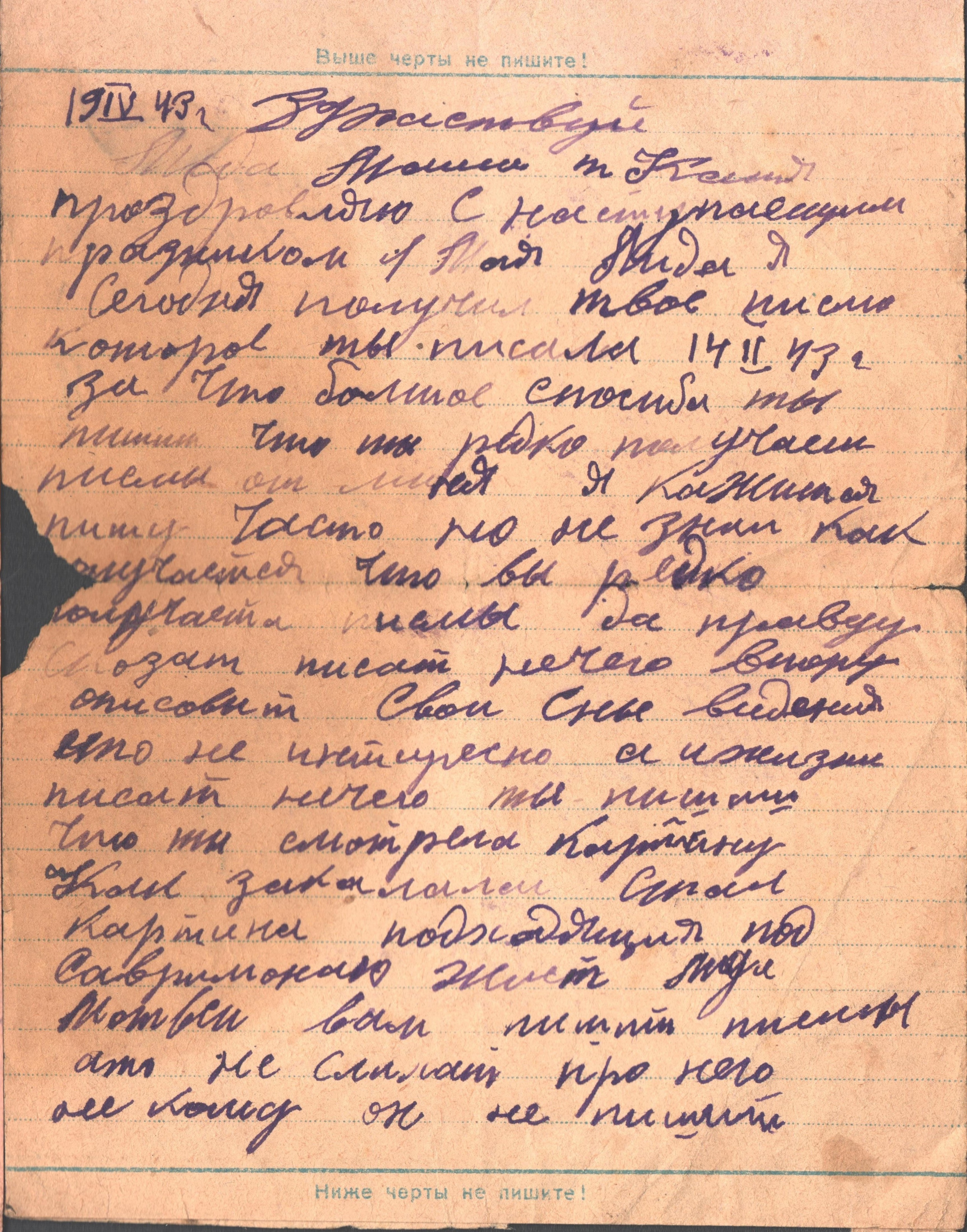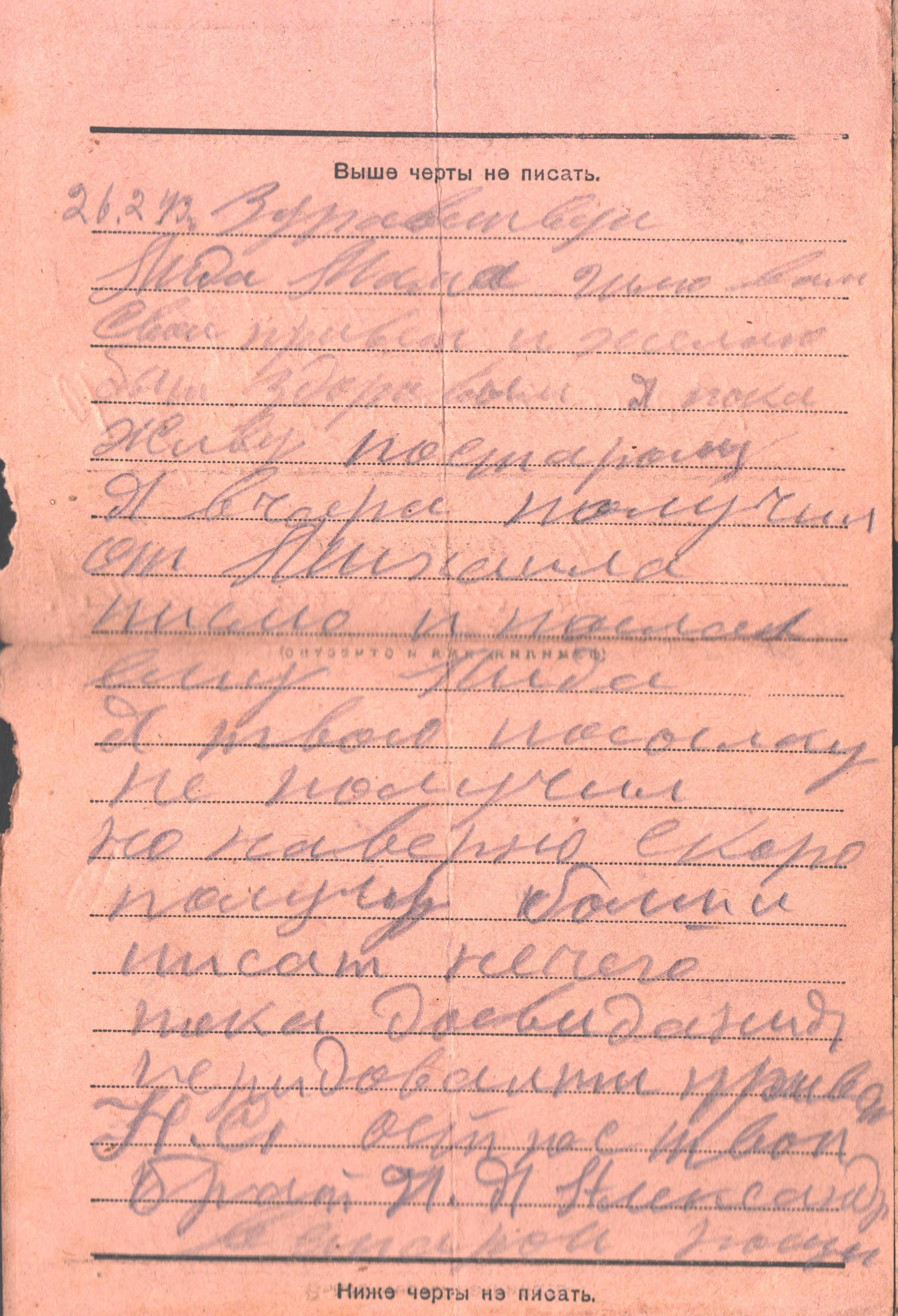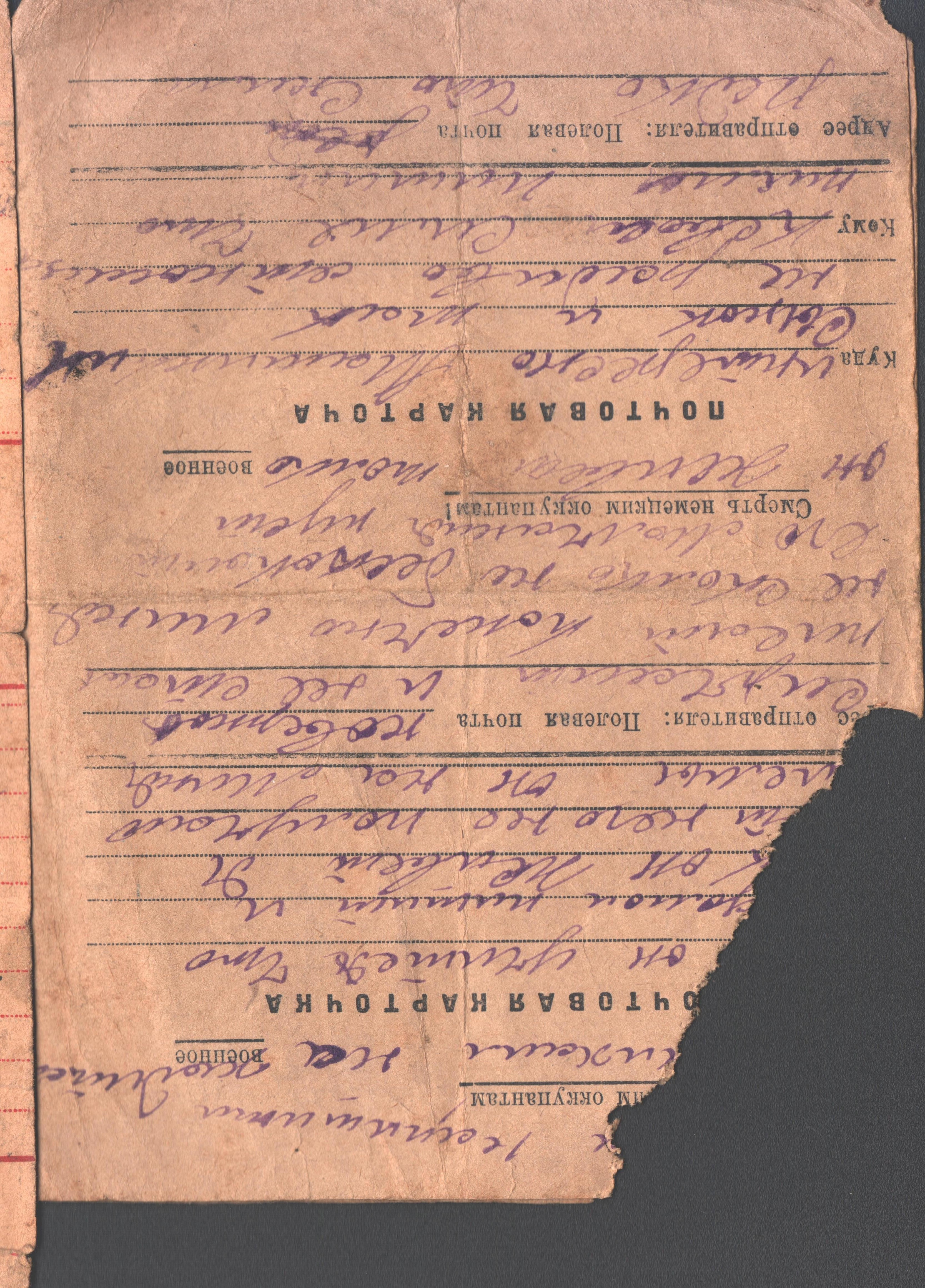 домой, но и друг другу. Часть писем написана на специальных, похожих на современные открытки, бланках, на тетрадных листах, а часть - на оберточной бумаге, страницах школьного дневника, зарубежных канцелярских формах. Зная о дефиците письменных принадлежностей,