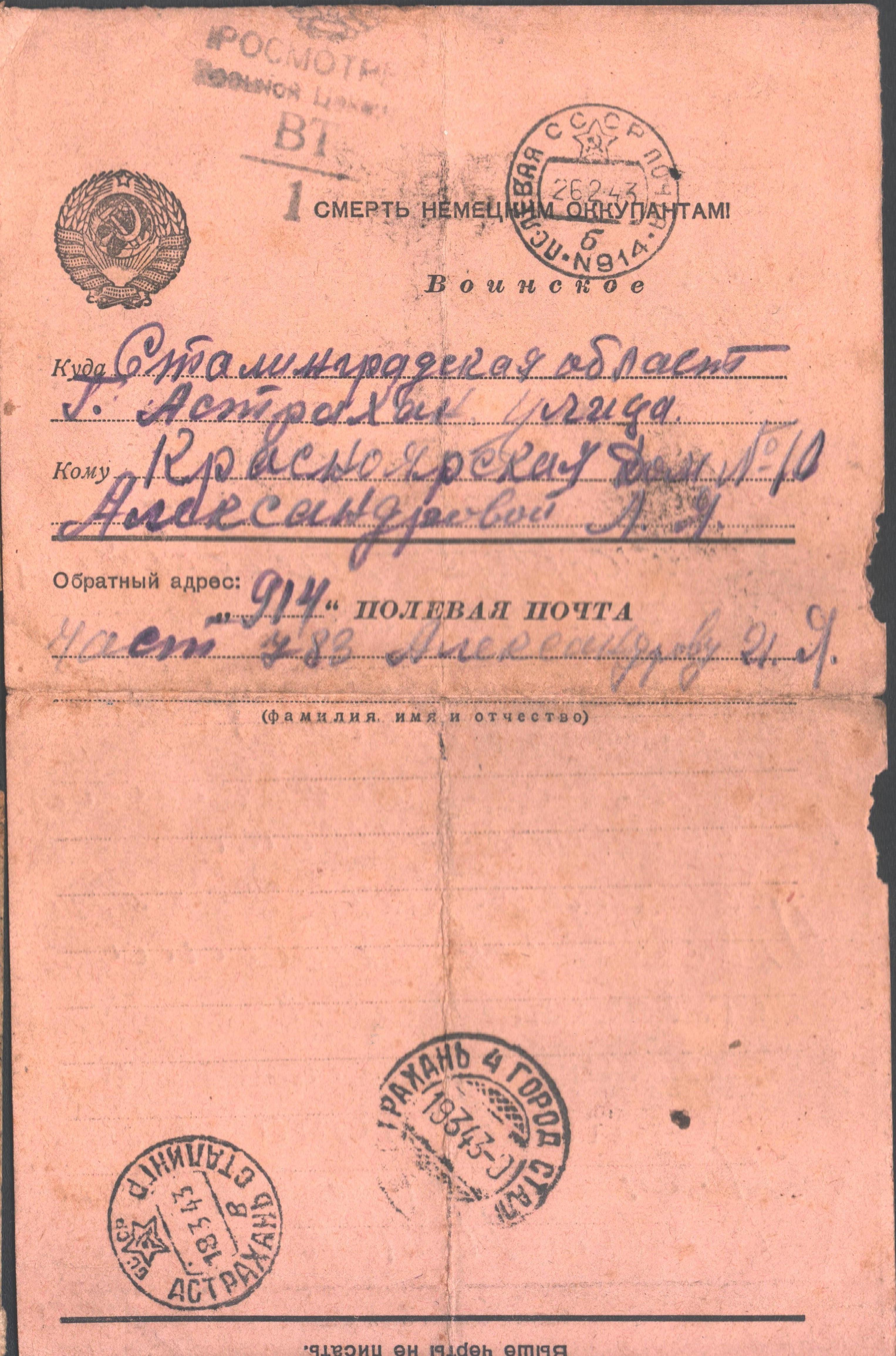 части, тщательно вычеркивались военной цензурой. Игнат интересовался жизнью близких, как они живут, не болеют ли, чем питаются, нет ли трудностей с одеждой, как учится Лида, что слышно о знакомых и родных, что нужно продать дом в Астрахани… Но помимо всего этого, Игнат много писал о том, что будет после окончания войны, как красиво пели соловьи в роще, где стояла их часть, обсуждал с сестрой фильмы, которые она смотрела в кино, мечтал о детях и о том, какими они будут. Он старался быть в курсе всех событий, даже взаимоотношений родных: кого-то просил не обижаться, кому-то передавал приветы, на других обижался сам...