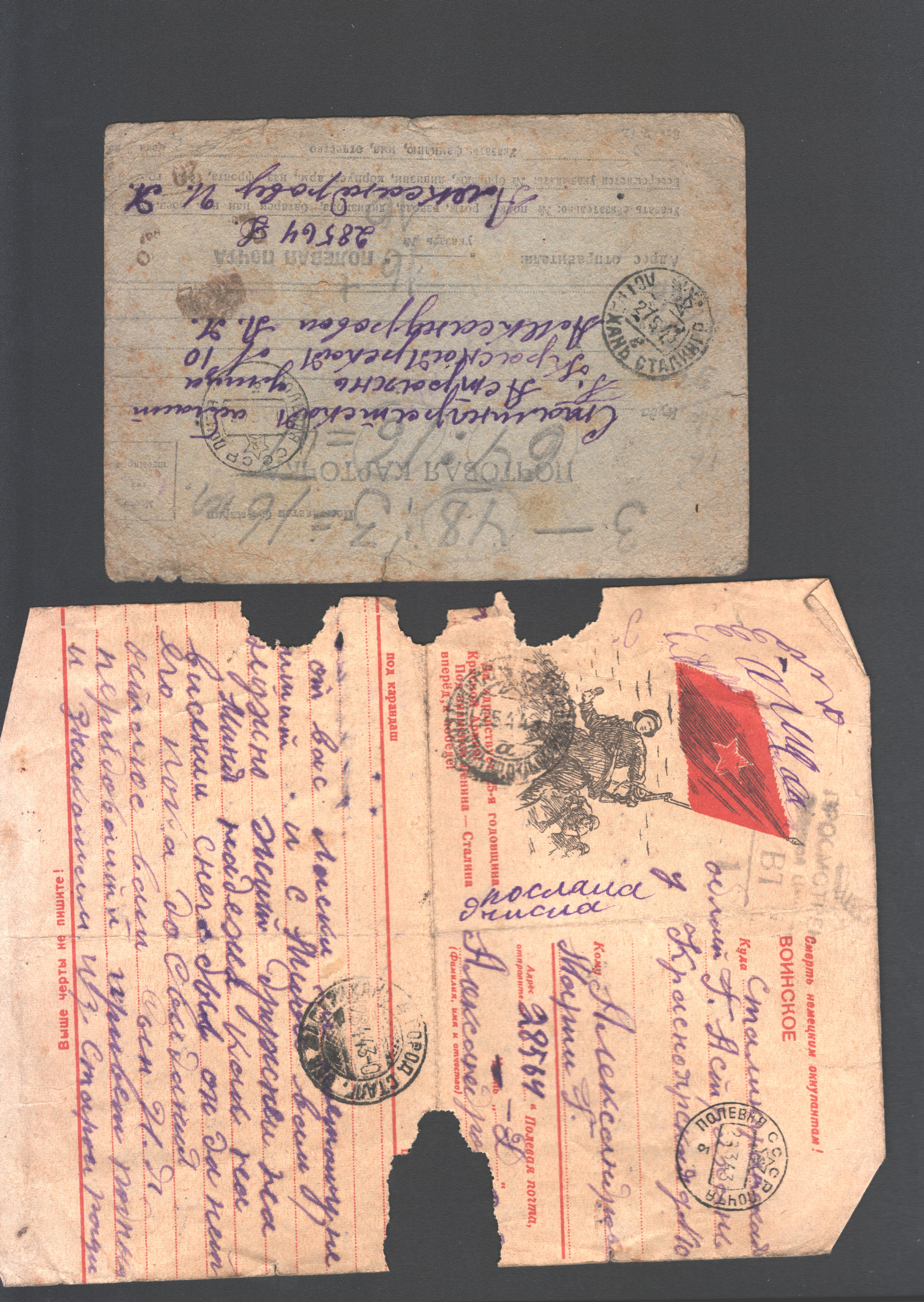 В письмах есть упоминания о том, что Игнат и Константин пересылали во время войны фотографии, справки, деньги, даже посылки и не только
