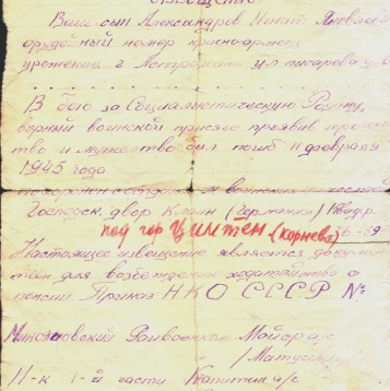 Сохранилось также извещение о гибели Игната от