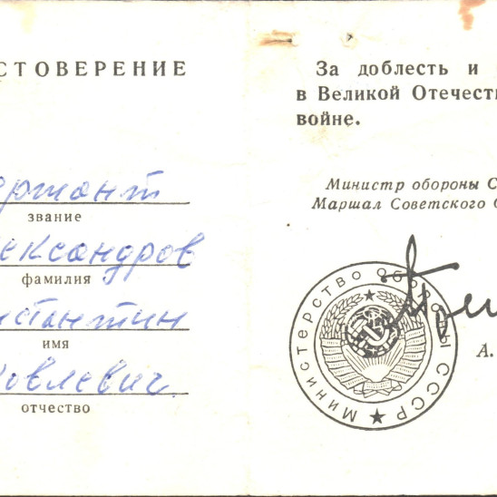 боевые заслуги, помимо вышеперечисленных, Константин также был награжден медалями «За взятие Кенигсберга», «За победу над