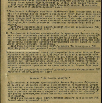 также своевременно и безаварийно доставил пушку в районы сосредоточения.«За свою упорную работу тракториста, обеспечивающую