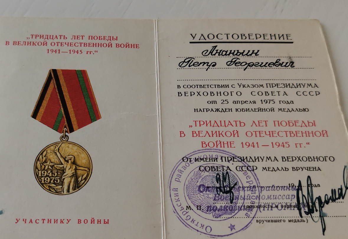 Боевой путь ветерана Ананьин Петр .Георгиевич защищал рубежи на Дальнем востоке награжден медалями 30 лет победы ВОВ и 60 лет вооруженных сил. Жена Надежда Константиновна в годы войны воспитывала дочь. После войны Петр вернулся домой , прожили долго ,у них было трое детей.
