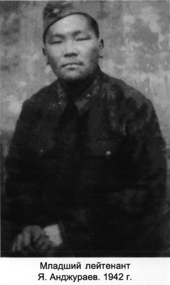 Анджураев Яман Анджураевич призван 21 июля 1941 года Сарпинским улусным военным комиссариатом. Был направлен в Ростовское военно-пехотное училище. Училище дислоцировалось под Новочеркасском в летнем лагере. В середине октября 1941 года участвовал в оборонительных боях за Ростов. В одном из боев был ранен, вместе с другими ранеными его доставили в Армавир. В декабре выписали из госпиталя и направили на станцию Прохладная, где формировались маршевые команды. Оттуда направили на Брянский фронт. Яман Анджураев начал службу в 81-й стрелковой дивизии, входившей в 48-ю армию. Был направлен на двухмесячные курсы усовершенствования командного состава при курсах младших лейтенантов Брянского фронта. В ноябре младший лейтенант Анджураев был выпущен на должность адъютанта стрелкового батальона. Анджураев прибыл в Елец. Здесь он получил направление в свою дивизию, входившую в 13-ю армию, на должность командира взвода отдельного лыжного батальона. Батальон выполнял различные задания. Стоял в обороне, его подразделения часто совершали рейды в тыл врага. Лыжники проводили разведывательно-диверсионные операции. Брали пленных. Однажды младший лейтенант Анджураев с двумя красноармейцами едва дотащили «языка», фриц оказался крупным и тяжелым. 9 февраля 1943 года дивизия освободила станцию Поныри, после чего занимала оборону на занятых рубежах. Лейтенант Анджураев, очищая Курскую землю, был тяжело ранен в голову и контужен. Вновь попадает в госпиталь, здесь он перенес операцию, но пришлось удалить глаз. По решению Комиссии Верховного Главнокомандования, последующим приказом Уральского военного округа младший лейтенант Яман Анджураевич Анджураев в феврале 1944 года был демобилизован из Вооруженных сил СССР по ранению. Был награжден орденами Отечественной войны I и II степени, шестью медалями.